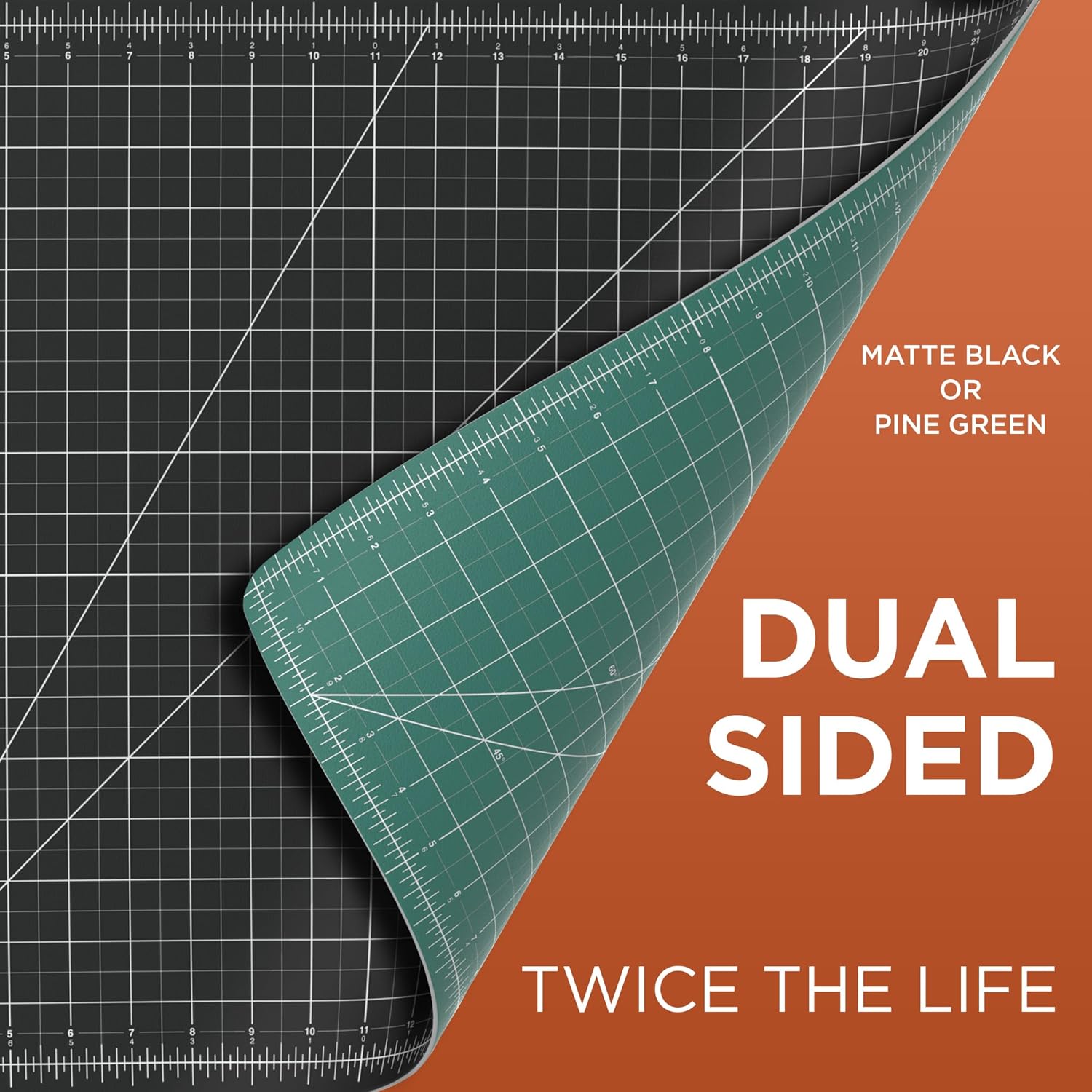 - Whether you like to use a rotary blade or a straight utility blade, the composite vinyl construction of this mat will be able to handle it. The design allows for a long-lasting, non-glare, surface that can be cut and slashed constantly without showing marks or cutting lines. Non-stick surface is impervious to abrasions and liquid spills.