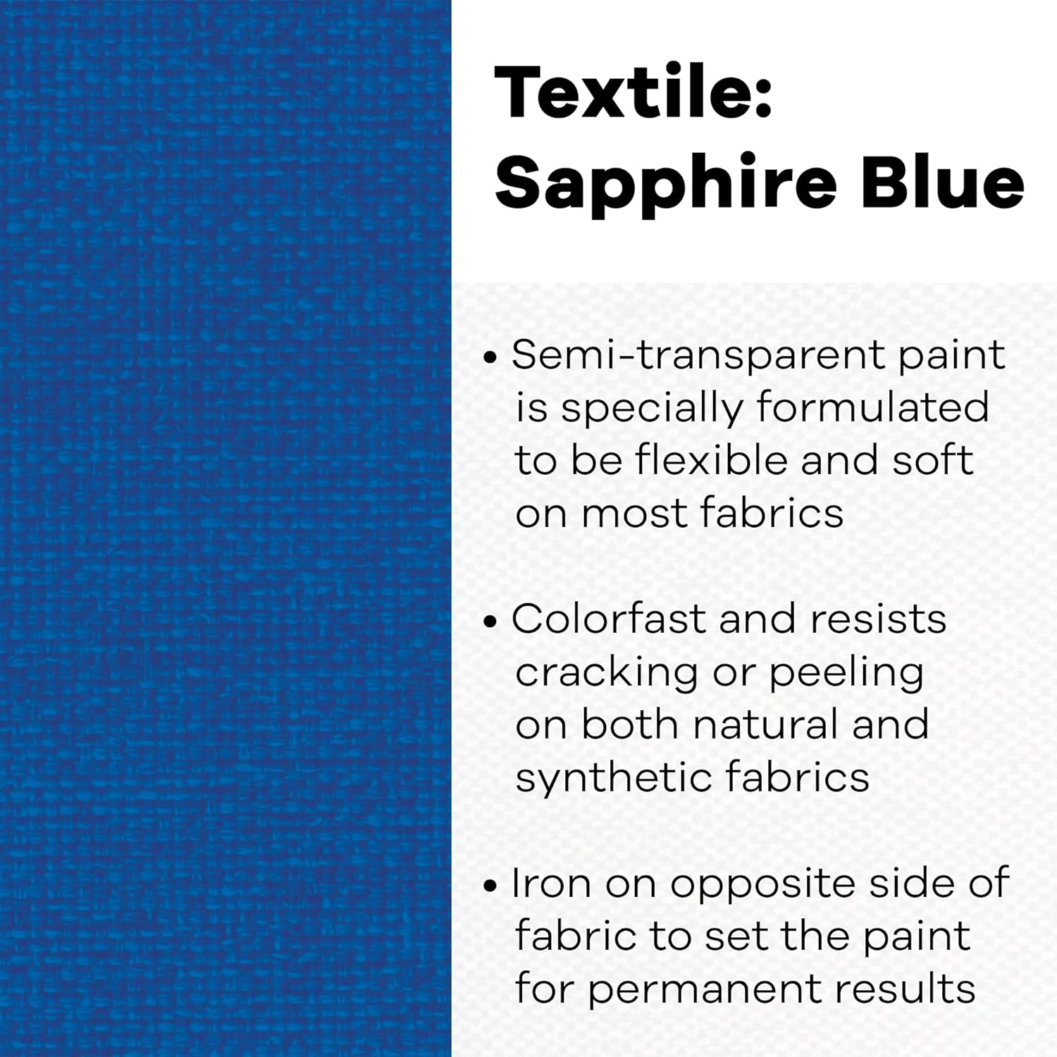 Jacquard Textile Color Saphire Blue - Permanent Fabric Paint for Clothes, Furniture Upholstery, Shoes or Tote Bags – Indoor & Outdoor Fabric Paint – 8 Oz Jar, Upholstery Fabric Paint