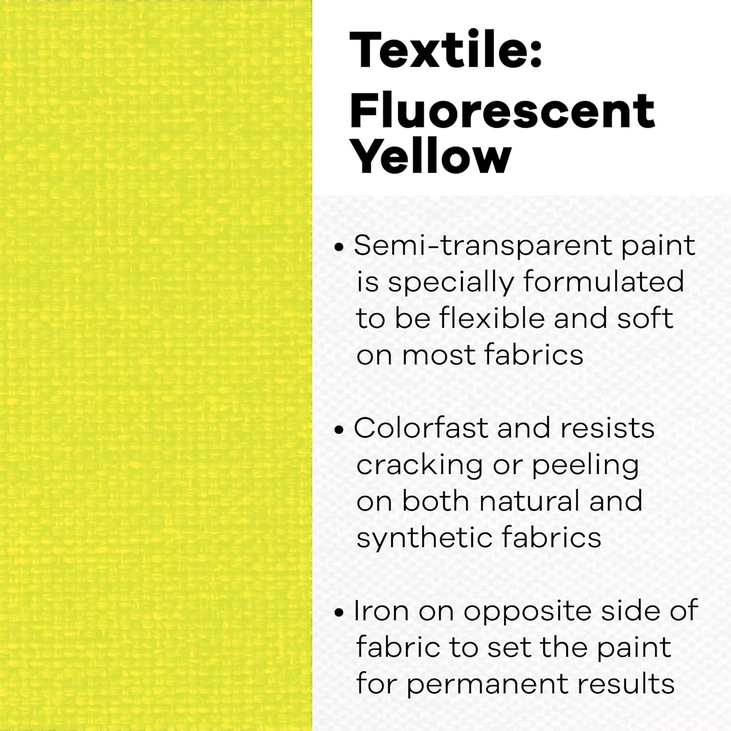 Jacquard Textile Color Fluorescent Yellow - Permanent Fabric Paint for Clothes, Furniture Upholstery, Shoes or Tote Bags – Indoor & Outdoor Fabric Paint – 8 Oz Jar, Upholstery Fabric Paint