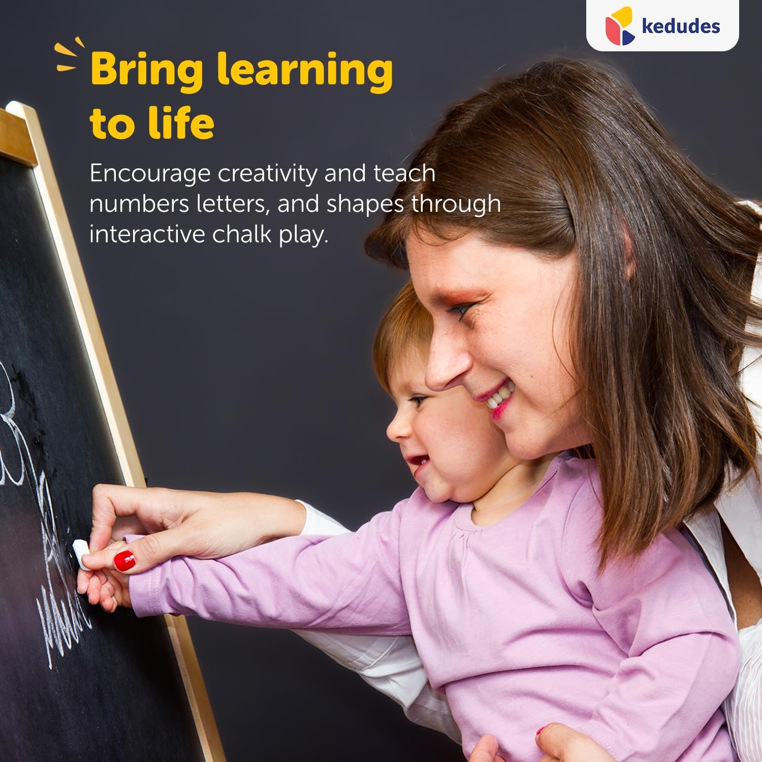Kedudes Dustless Chalk with Eraser, 24pk - 12 Colored Chalkboard Chalks and 12 White Chalk for Chalkboard and Board Erasers Set - Blackboard Chalks and Eraser with Wooden Handle