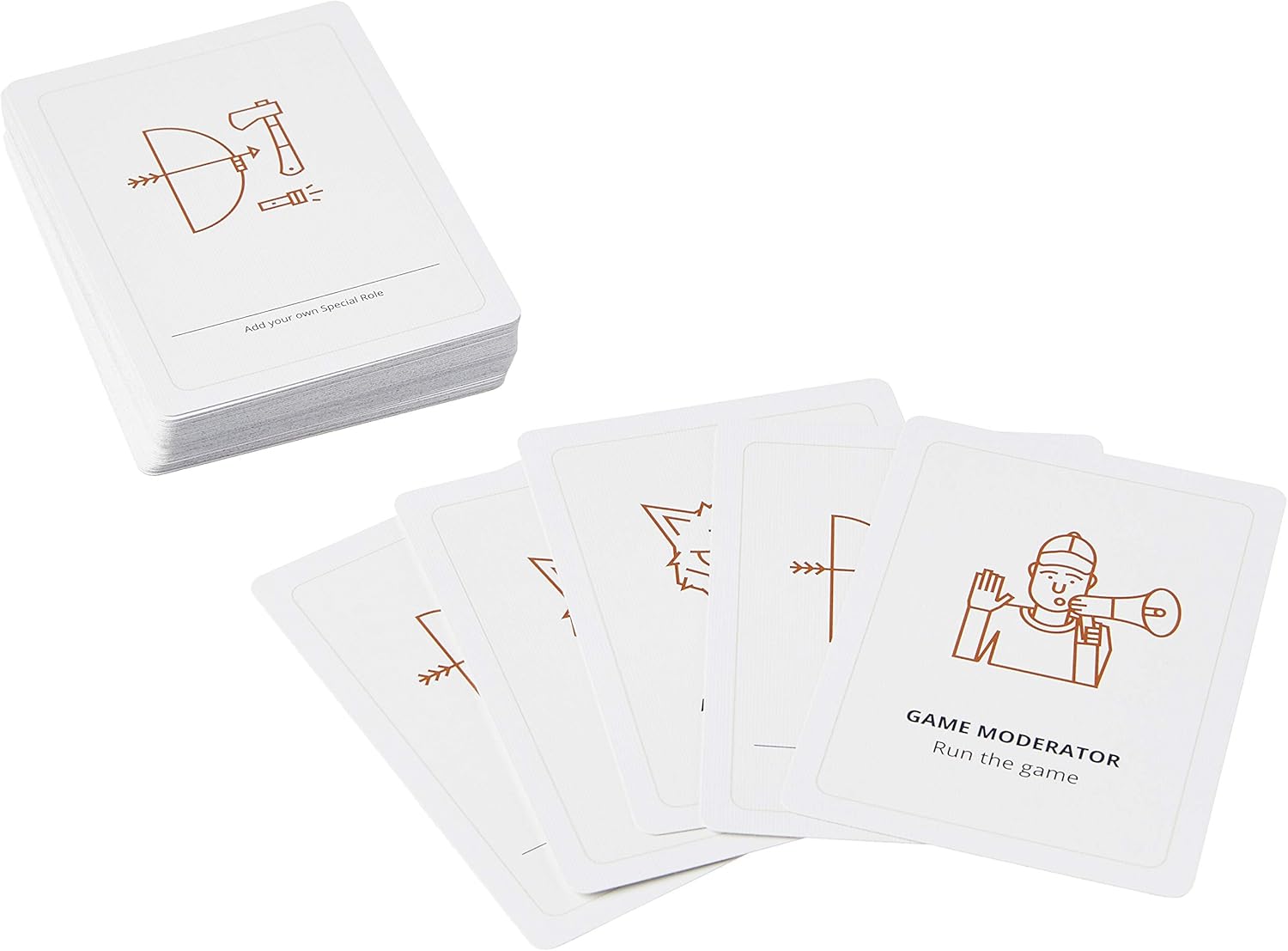 - 20 Villager Cards, 10 Werewolf Cards, 8 Wild Cards, 2 Seer Cards, 2 Doctor Cards, 2 Moderator Cards, 2 Village Drunk Cards, 2 Witch Cards, 2 Alpha Werewolf Cards