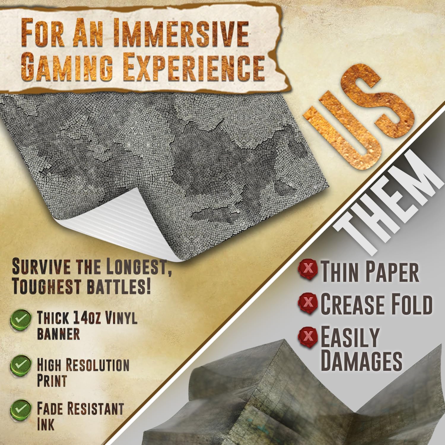 Battle Game Mat for DND - [48" x 72"] Wargaming Tabletop Map - Gaming Board for Warhammer 40k, Dungeons and Dragons, Wargame RPG - Vinyl Gaming Stone Terrain