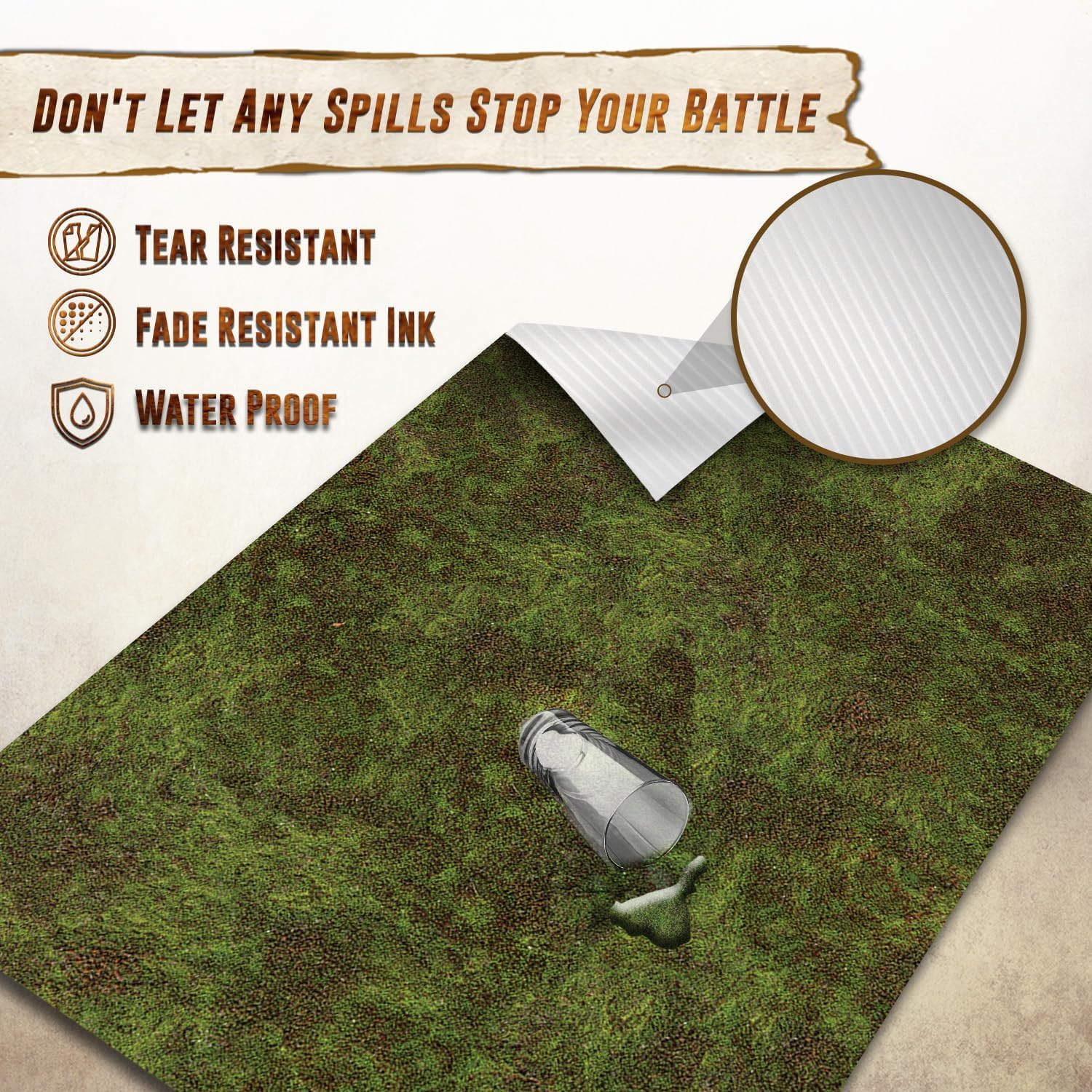 - ENRICH YOUR GAMING EXPERIENCE - A heavy-duty gaming mat, made to handle plenty of epic journeys and battles! Transform your tabletop or gaming surface quickly and easily with our battle gaming field mat. Each mat is carefully crafted with detailed terrain making it a valued addition to your next quest!