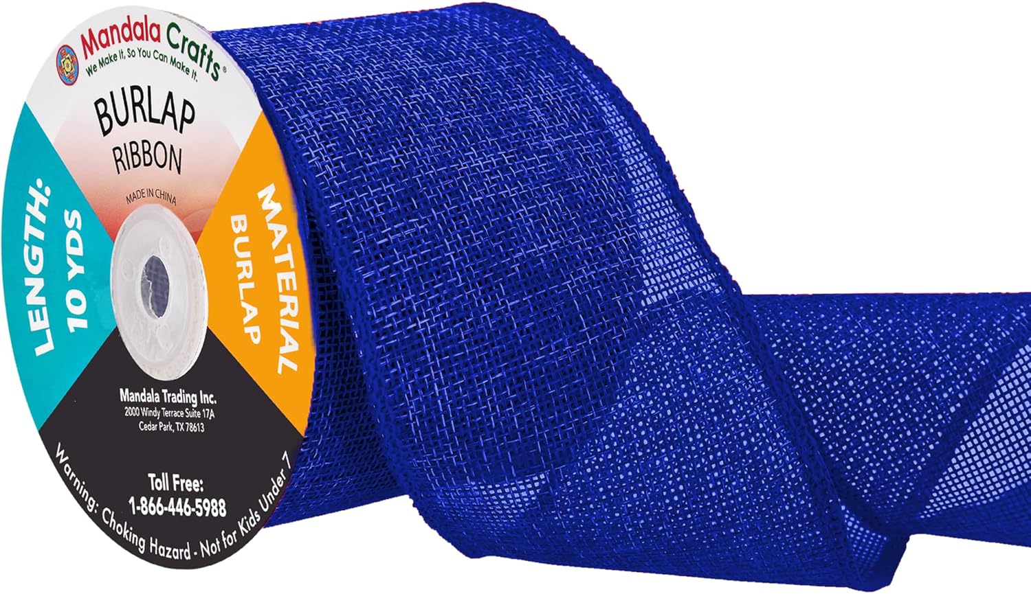 - Bulk Burlap Ribbon Royal Blue Linen Ribbon: Each continuous 3 in colored burlap roll is 10 yard long. With two royal blue burlap rolls, total 20 yards long, the burlap ribbon bulk pack is handy to decorate trees and mason jars or hang pictures.