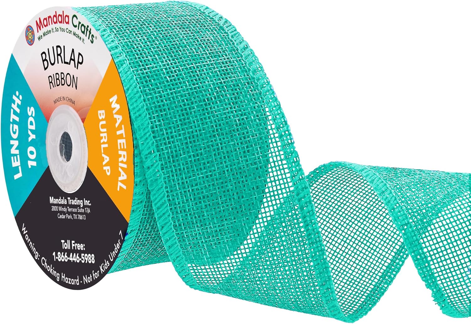 Mandala Crafts Turquoise Burlap Ribbon 2 Inches Wide Jute Ribbons for Crafts - 20 Yds Roll Rustic Burlap Wrap Trim Ribbons for Wreaths Bows Wedding Party Decoration