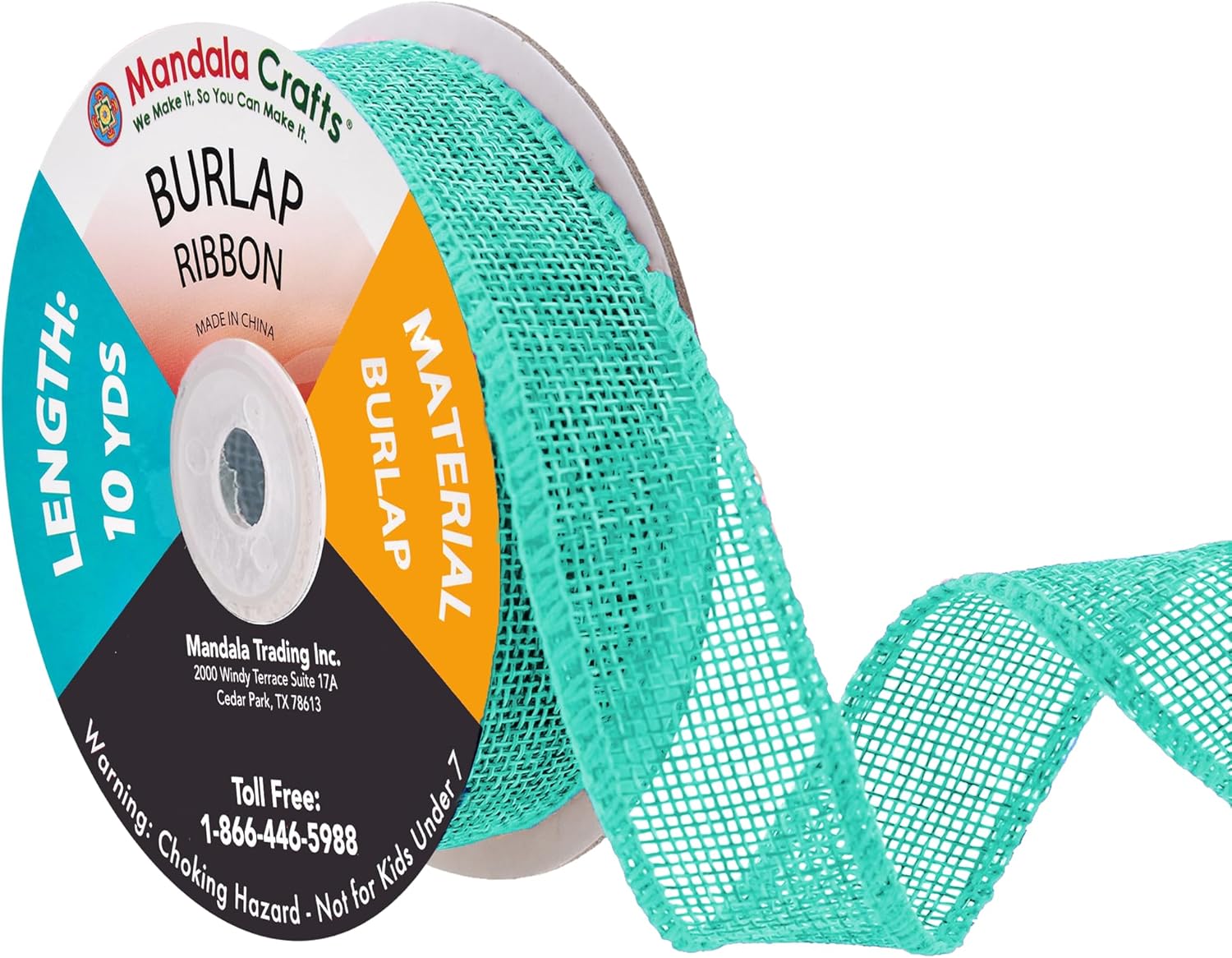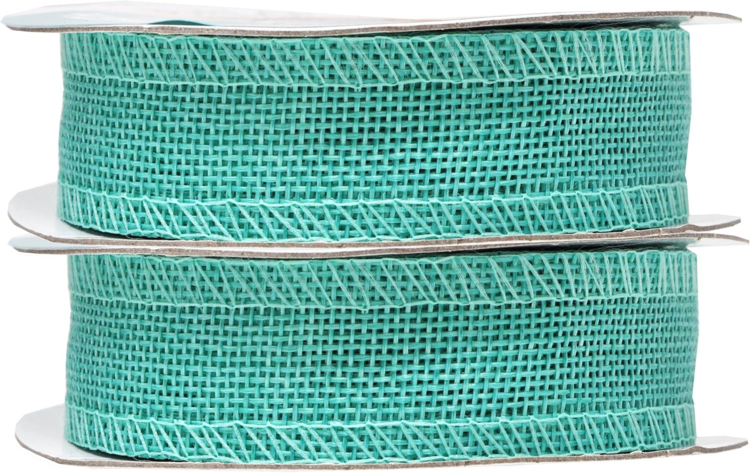 - Bulk Burlap Ribbon Turquoise Linen Ribbon: Each continuous 1 in colored burlap roll is 10 yard long. With two turquoise burlap rolls, total 20 yards long, the burlap ribbon bulk pack is handy to decorate trees and mason jars or hang pictures.