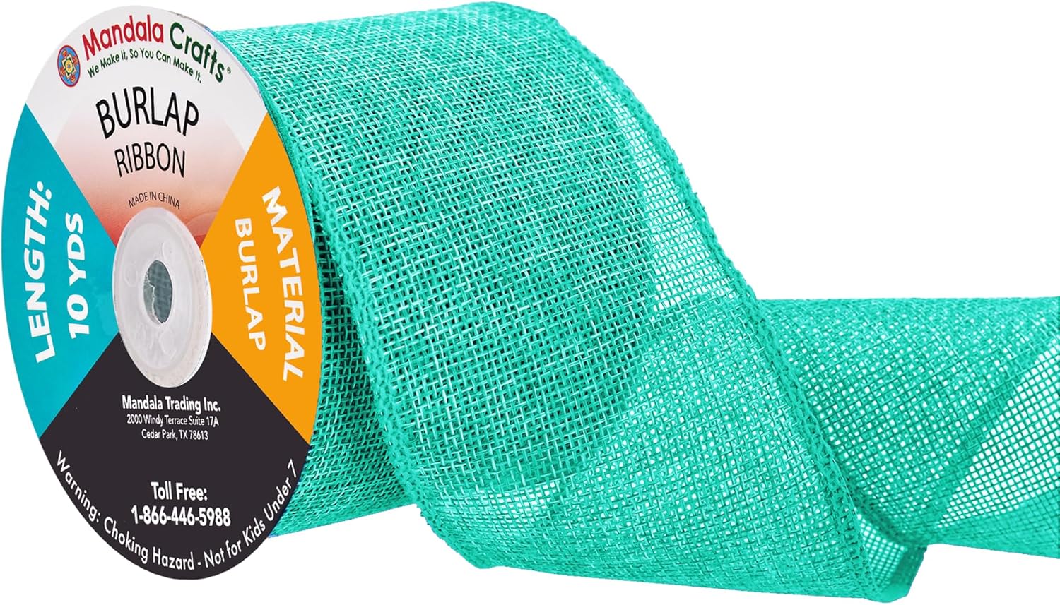 - Natural Burlap Ribbon: Compared to other jute burlap ribbons, our rustic burlaps ribbon with a fray & shed-resistant hemmed edges is made from thicker turquoise burlap fabric. The indoor & outdoor colored burlap crafts ribbon is colorfast and will not bleed.