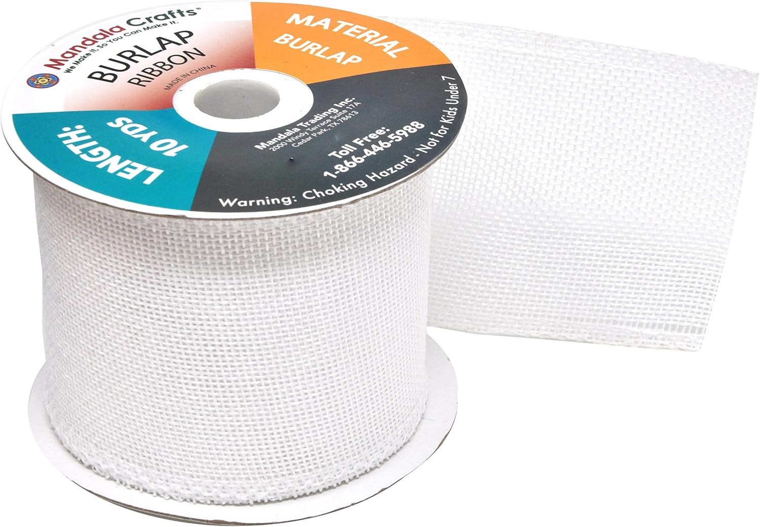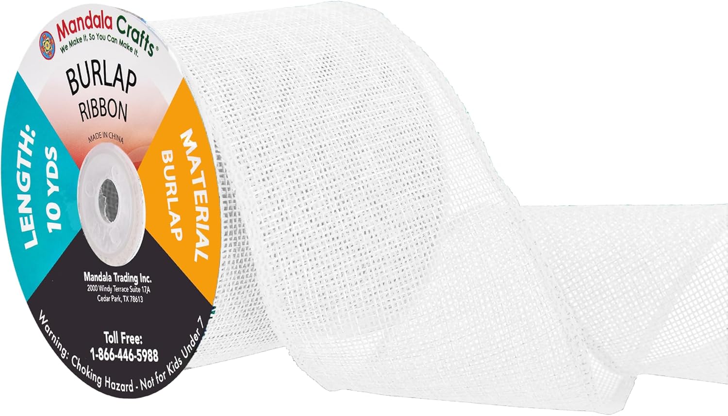 Mandala Crafts White Burlap Ribbon 3 Inches Wide Jute Ribbons for Crafts - 20 Yds Roll Rustic Burlap Wrap Trim Ribbons for Wreaths Bows Wedding Party Decoration