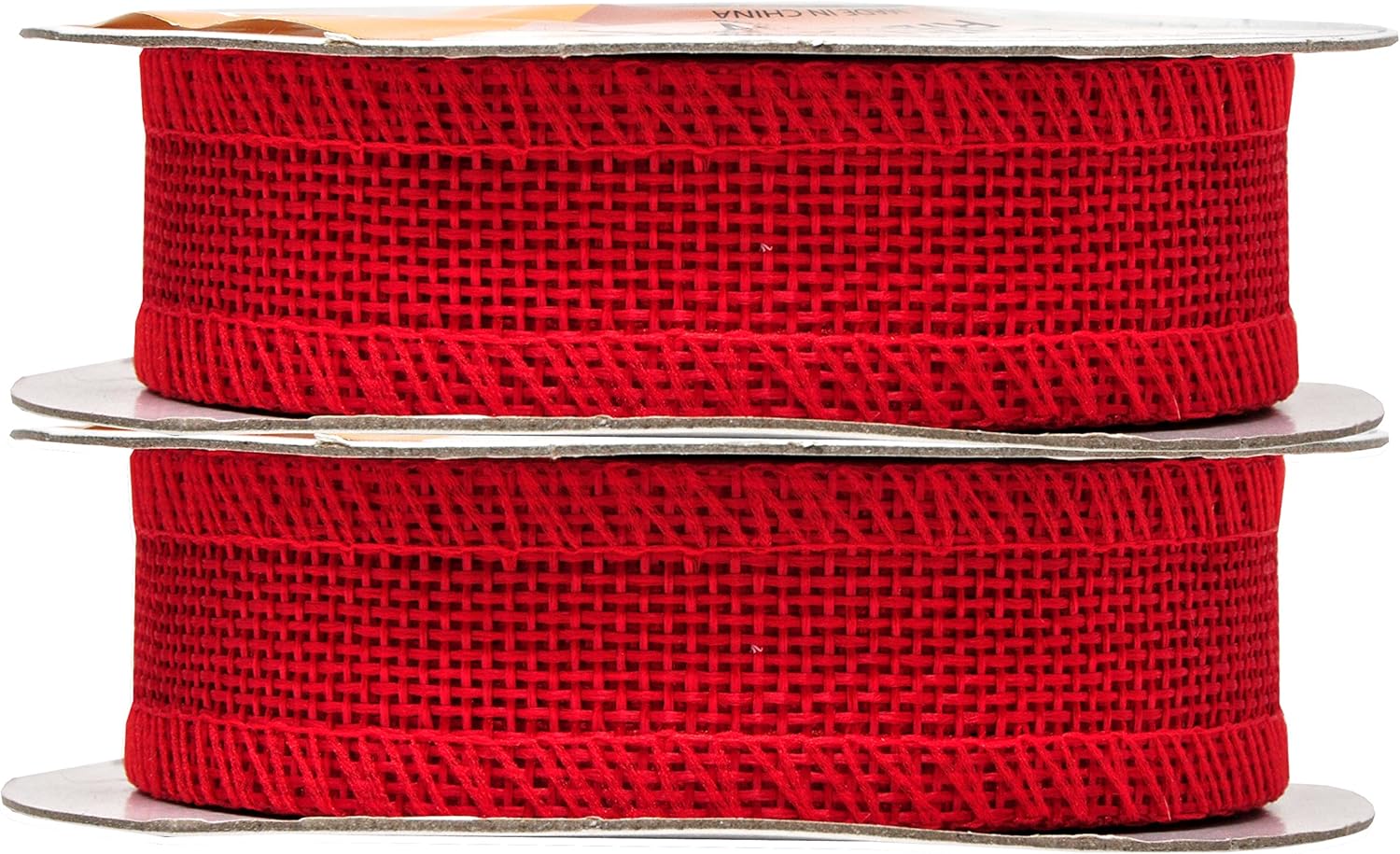 Mandala Crafts Red Burlap Ribbon 1 Inch Wide Jute Ribbons for Crafts - 20 Yds Roll Rustic Burlap Wrap Trim Ribbons for Wreaths Bows Wedding Party Decoration