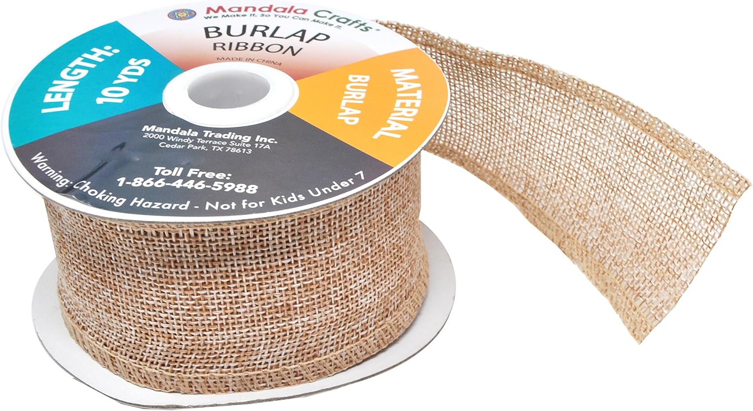 Mandala Crafts Natural Burlap Ribbon 2 Inches Wide Jute Ribbons for Crafts - 20 Yds Roll Rustic Burlap Wrap Trim Ribbons for Wreaths Bows Wedding Party Decoration