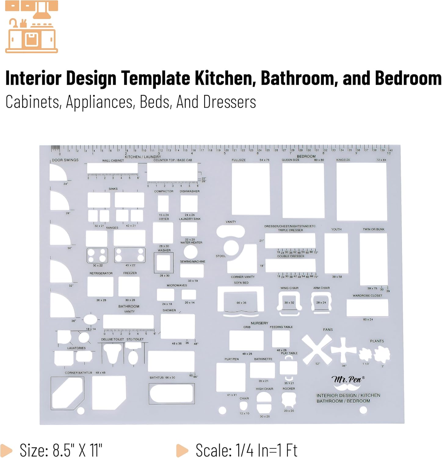 - 3 Pc Architect Drawing And Interior Design Template Set (Scale: 1/4 Inch = 1 Ft): House Plan Template, Furniture Template, And Kitchen, Bed & Bath Template