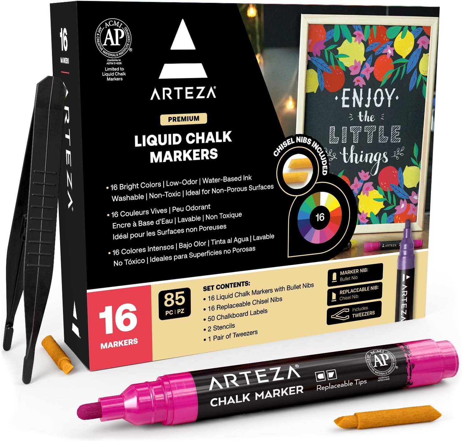 - Arteza Quality, Artist-Inspired – At Arteza, we’re passionate about developing tools that inspire. Our liquid chalk markers are thoughtfully crafted to support creativity in professionals, hobbyists, and creators of all kinds—indoors and out.