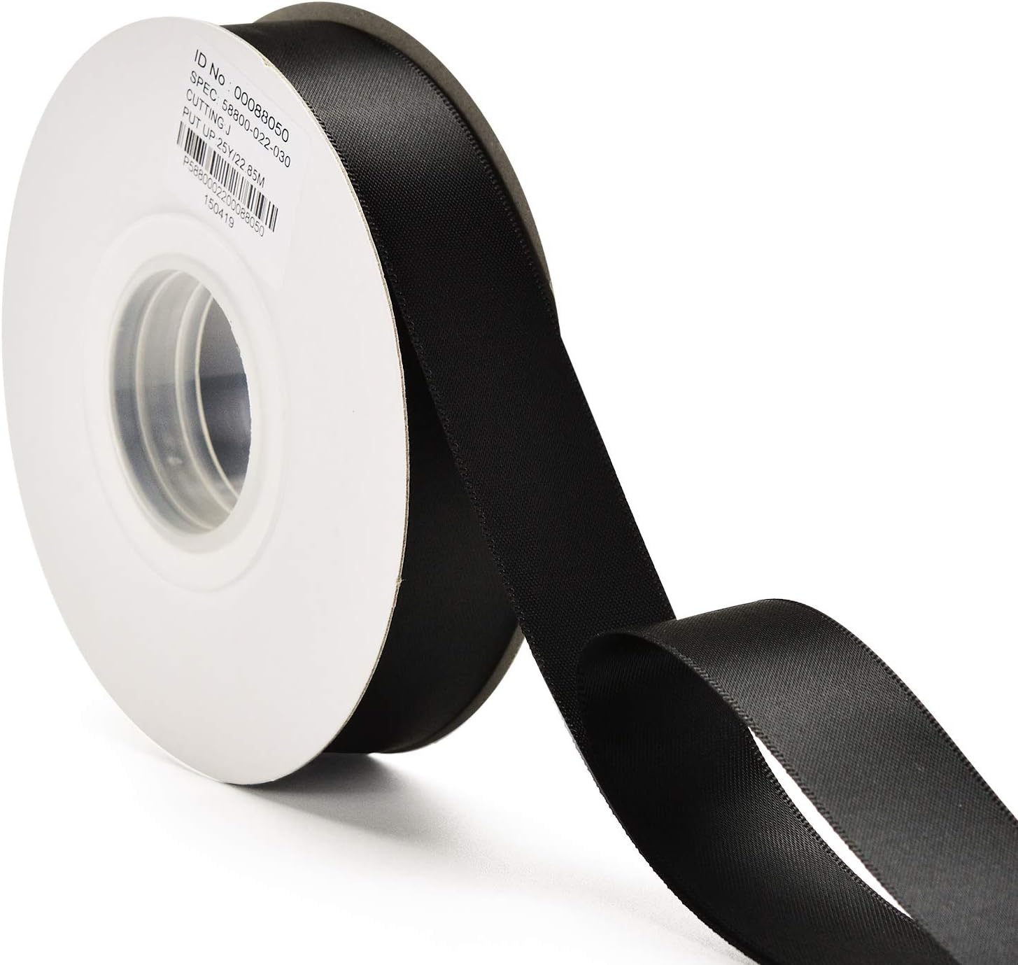 YAMA Double Face Satin Ribbon - 7/8" 25 Yards for Gift Wrapping Ribbons Roll, Black