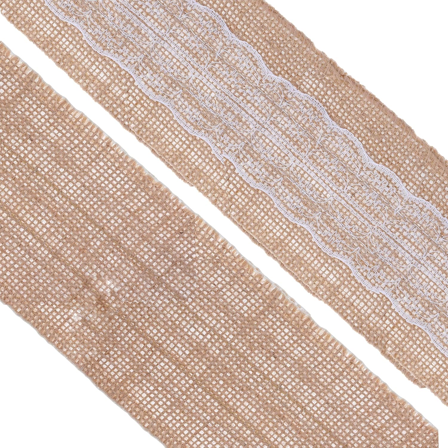 - Bulk Lace and Burlap Ribbon: Each continuous Β½ inch burlap ribbon with lace is 10 yard long. With two burlap rolls, total 20 yards long, the burlap ribbon bulk pack is handy to decorate trees and mason jars or hang pictures.