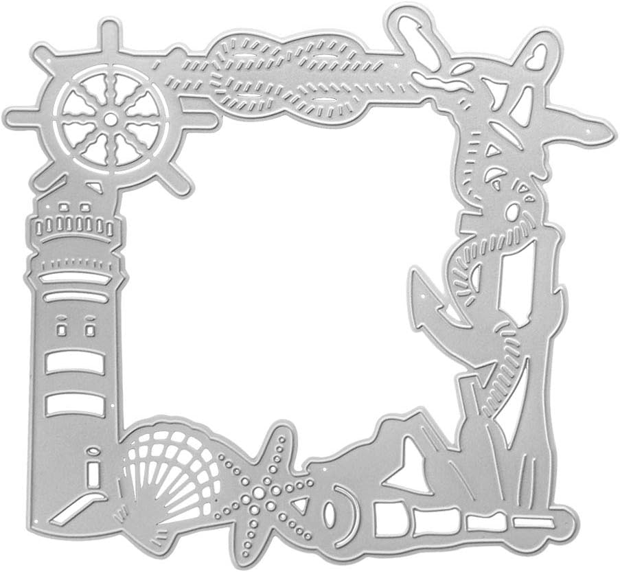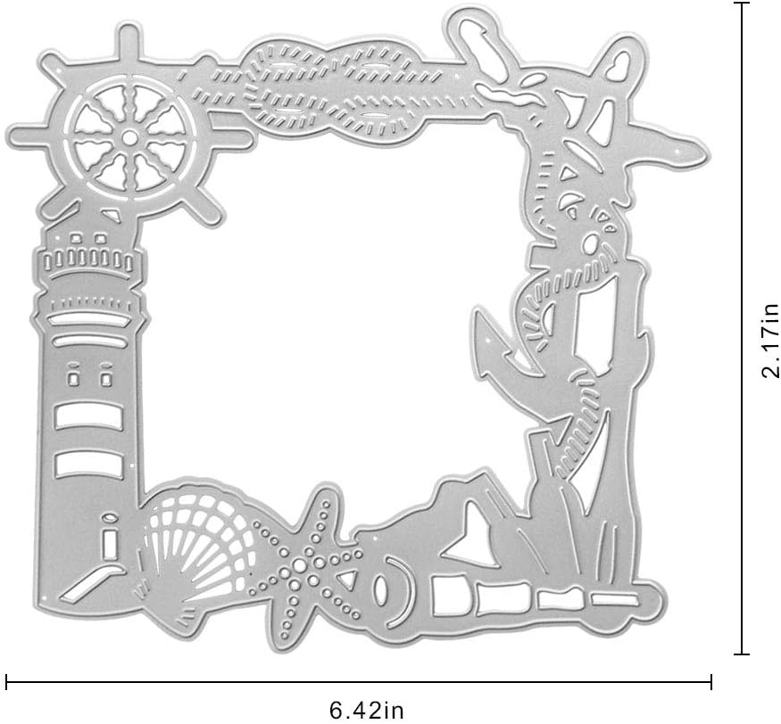 Metal Shell Ocean Element Background Frame Cutting Dies,Ocean Element Shell Starfish Telescope Sea Die Cuts Template Mould for DIY Scrapbooking Album Decorative Paper Dies Card Making
