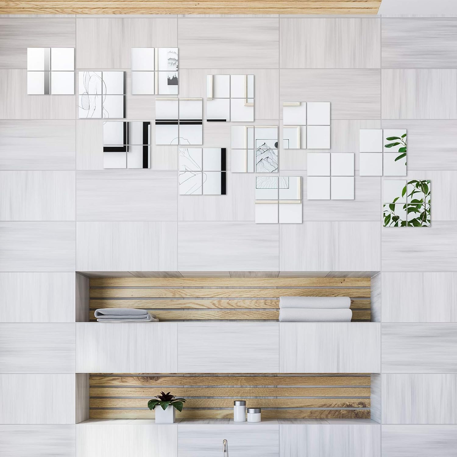 Jetec Mini Size Acrylic Square Mirror Adhesive Small Square Mirror Tiles for Crafts and DIY Projects Supplies(25 Pcs,3 Inches)