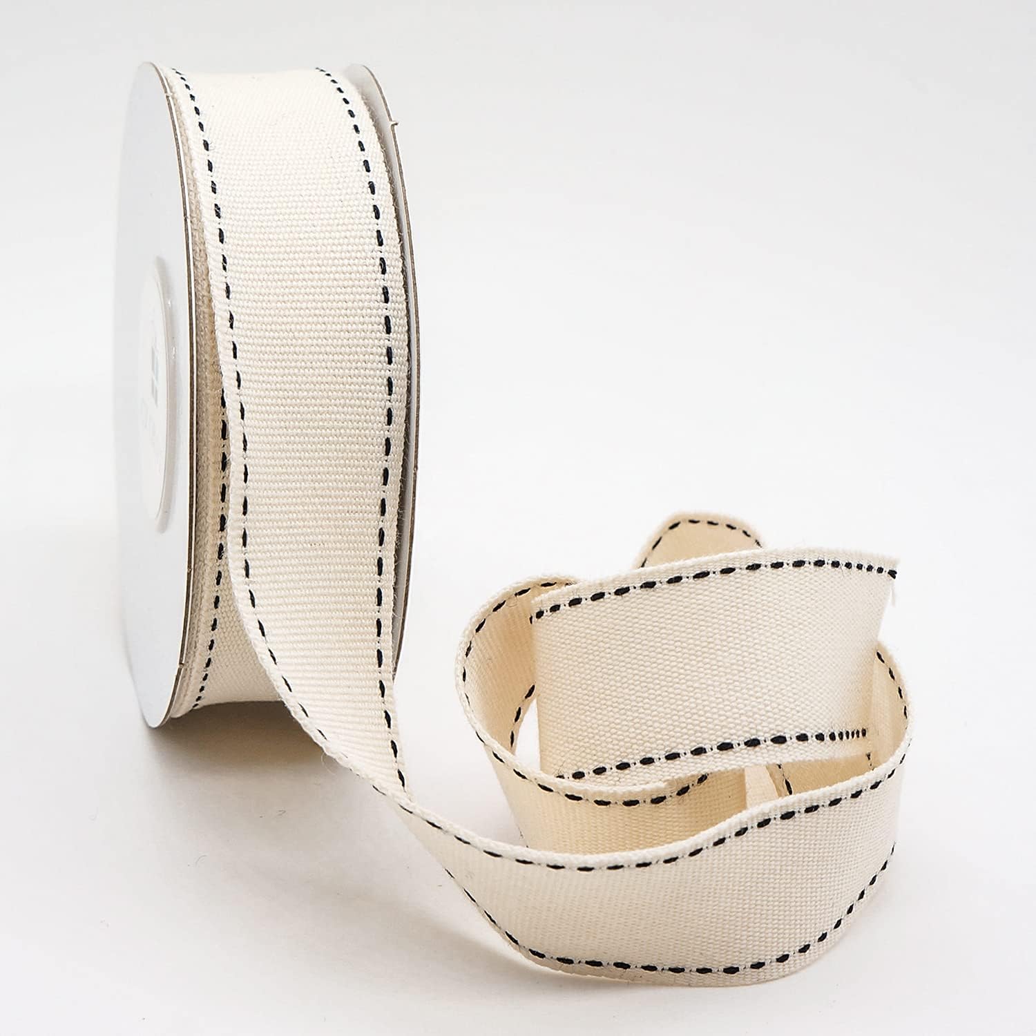 - EASY TO USE - The 10-yard long Ivory Cotton Black Stitched Ribbon 7/8" is enough for all the decorating and accenting your DIY Crafts. The Ivory Cotton Black Stitched Ribbon 7/8" is easy to use and won’t tangle. It can be tied or glued on gift packages and DIY craft projects such as car and chair bow, wreath, flower bouquet.