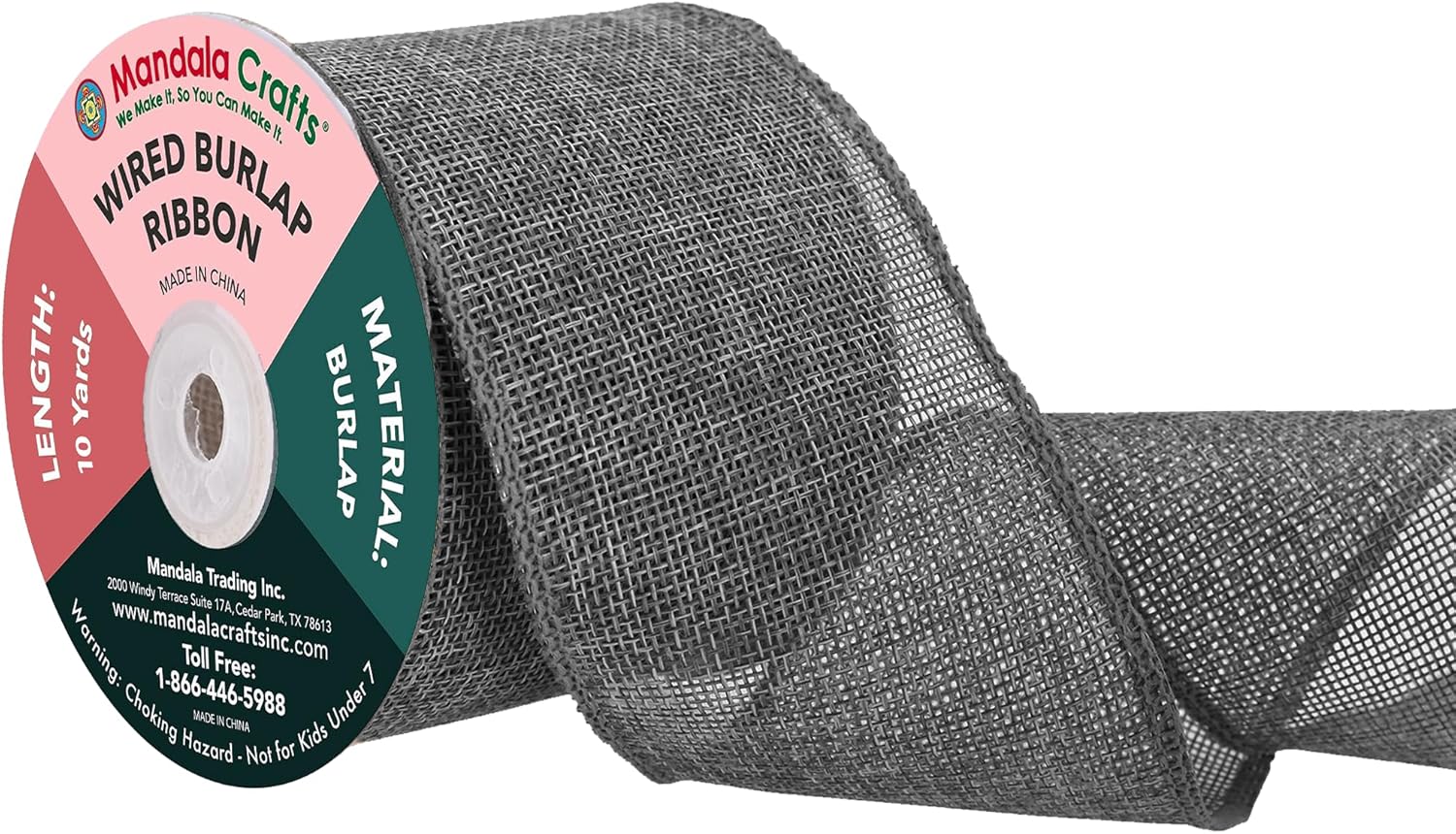 - Burlap Gray Wired Ribbons for Wrapping, DIY, Scrapbooking, & Floral Arrangement: The wired rustic ribbon is the ideal colored burlap fabric for garlands, bows, flowers, cards ornaments & curtain tiebacks and gift wrapping ribbon for boxes & baskets.