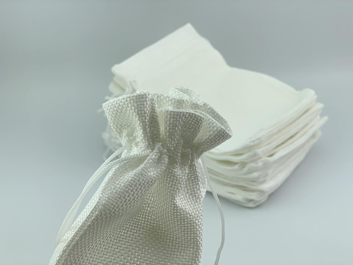 - Palmhomee Pack of 25 Burlap Gift Bags with Drawstring Linen Jewelry Pouches Wedding Hessian Jute Bags for Birthday Jewelry and Treat Pouches Party Wedding Favors Gift Art and DIY Craft (5x7 Inch, White)