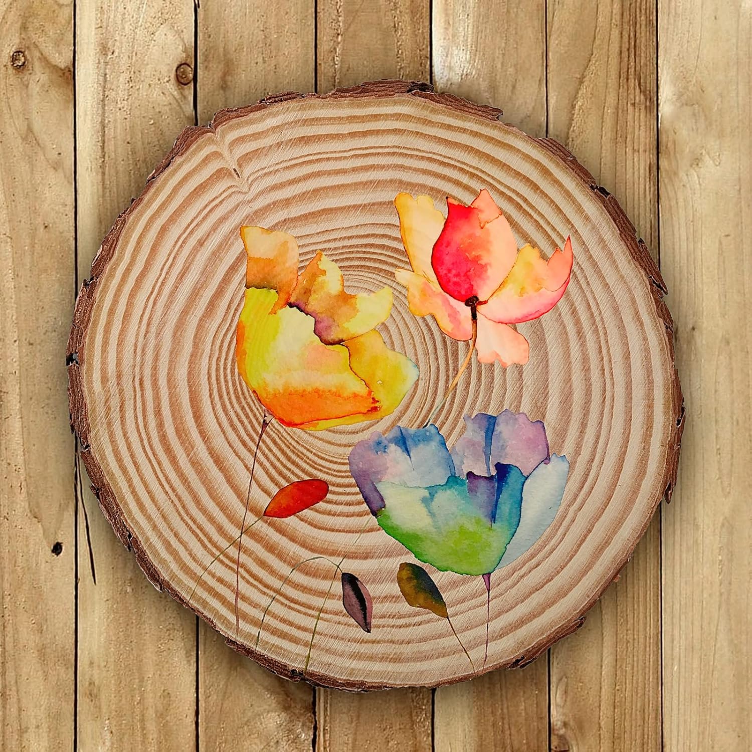 - EASY TO EMBELLISH - The unfinished wood slices are quite soft and light in weight, making them easy to perforate. They can be applied to various media, such as water color, colored pencils, pen, and acrylic paint. The outside bark may be a little fragile. You can coat it in some watered down PVA or sealer to give it some strength.