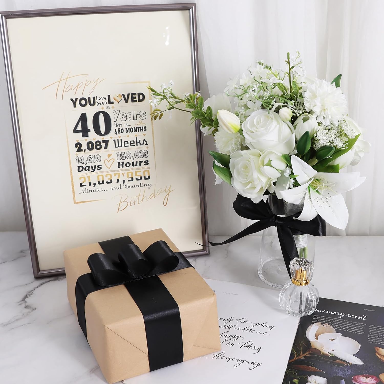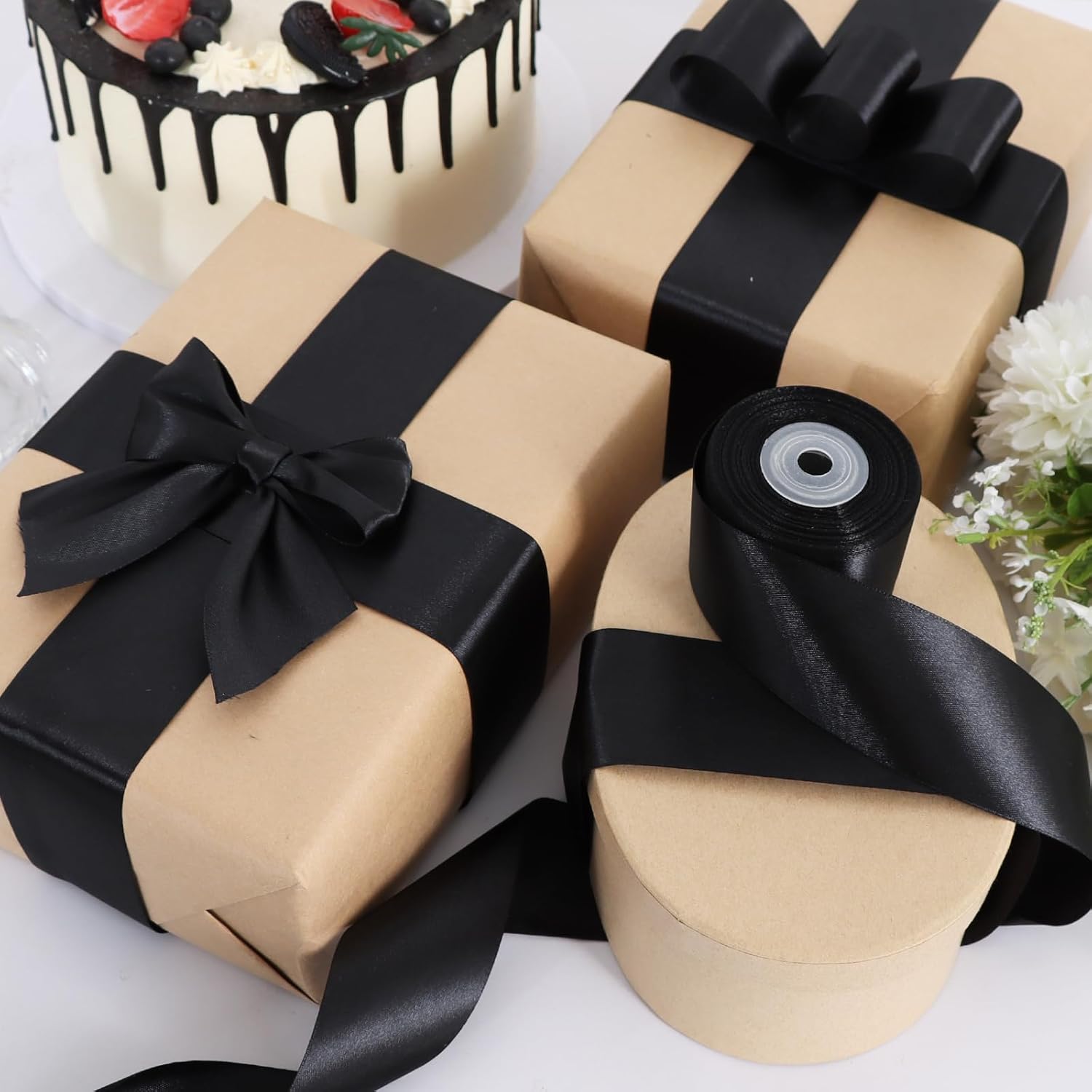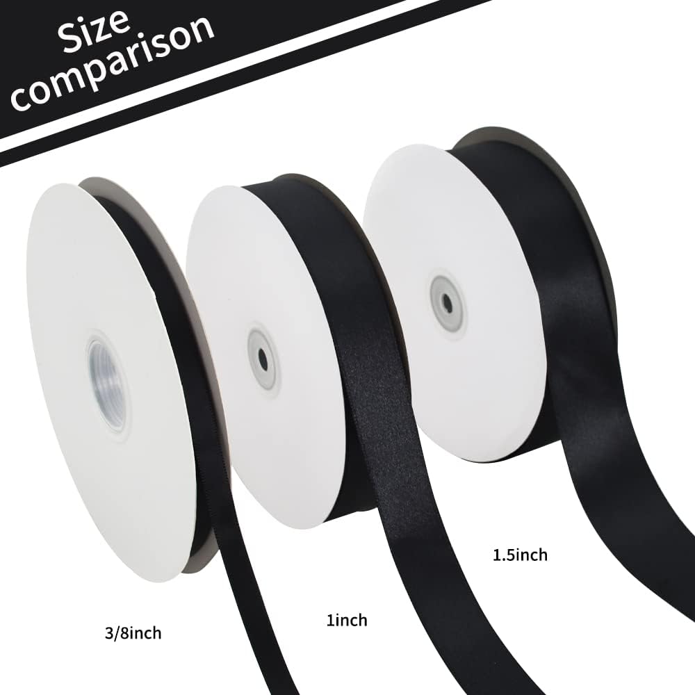 TONIFUL 1 Inch x 100yds Black Satin Ribbon, Thin Solid Color Satin Ribbon for Gift Wrapping, Crafts, Hair Bows Making, Wedding Party Decoration, Sewing, Halloween, Floral Bouquets, Christmas