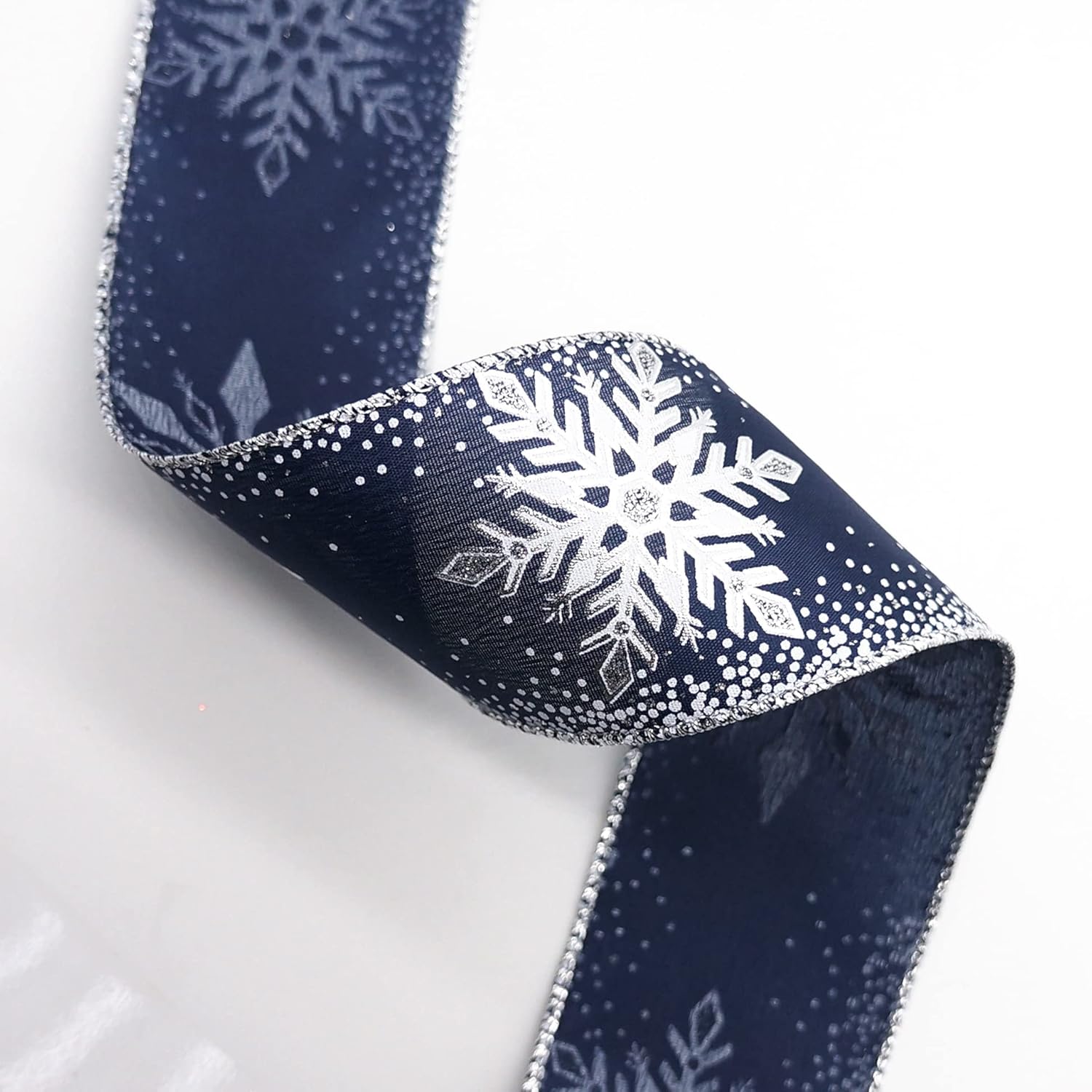 - GREAT WORKMANSHIP - Our navy satin with silver snowflake wird ribbon 2.5" has a density weave so you won’t find any loose edges. You won’t find any fraying ends or loose strings anywhere, making our navy satin with silver snowflake wird ribbon 2.5" perfect for high-end and professional DIY works and Crafts.