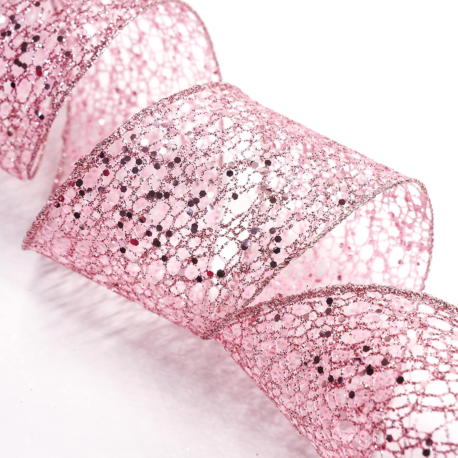 - GREAT WORKMANSHIP - Our Sparkling Glitter Mesh Wired Ribbon 2.5" has a density weave so you won’t find any loose edges. You won’t find any fraying ends or loose strings anywhere, making our Sparkling Glitter Mesh Wired Ribbon 2.5" Rose Gold color perfect for high-end and professional DIY works and Crafts.