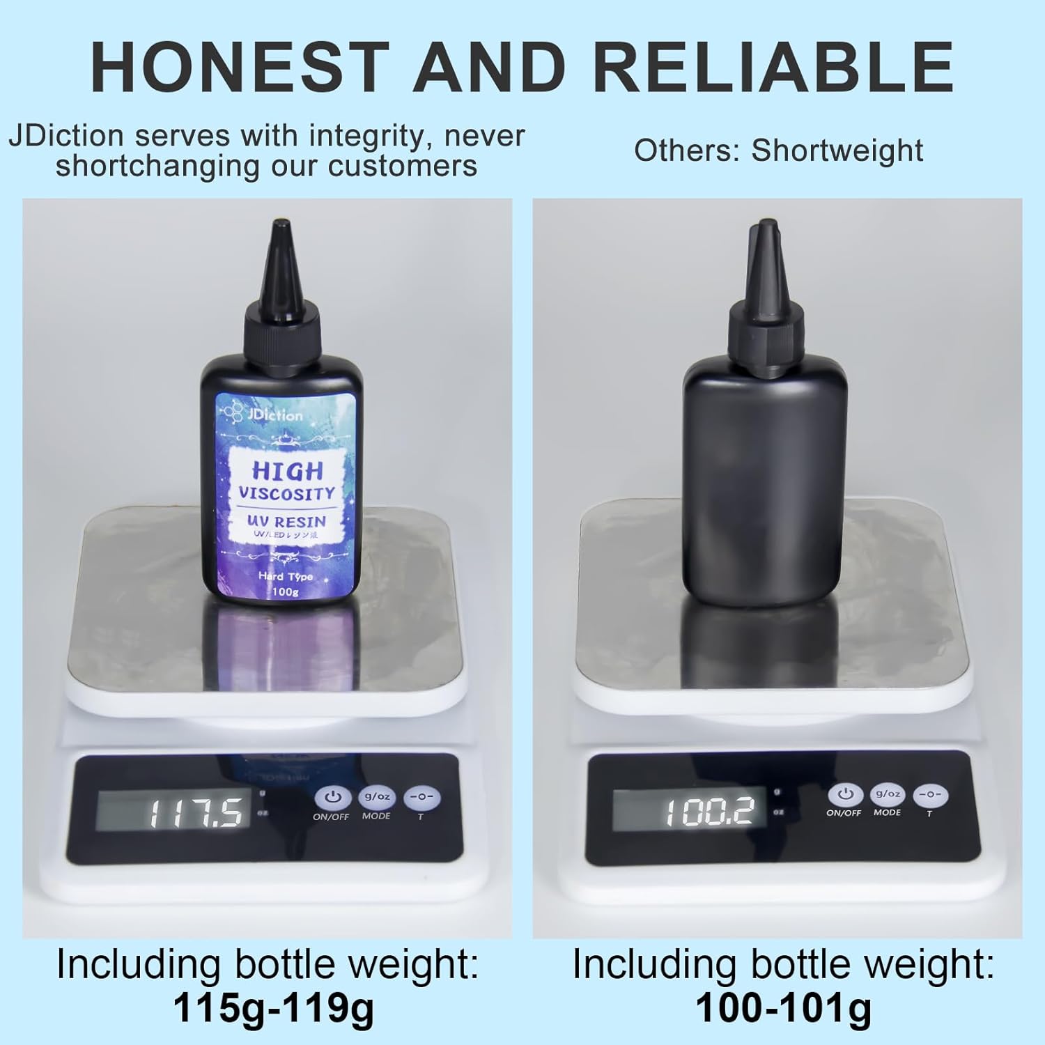 - đ„ăHIGH VISCOSITYăThrough the continuous feedback and suggestions of our customers, we have developed and produced different versionsââHigh Viscosity UV Resin; On the basis of the JDiction original UV resin, we have greatly improved the viscosity of UV resin(viscosity: 3700-3800 cps), the flow of UV resin slower in nature; great for variety of DIY crafts.