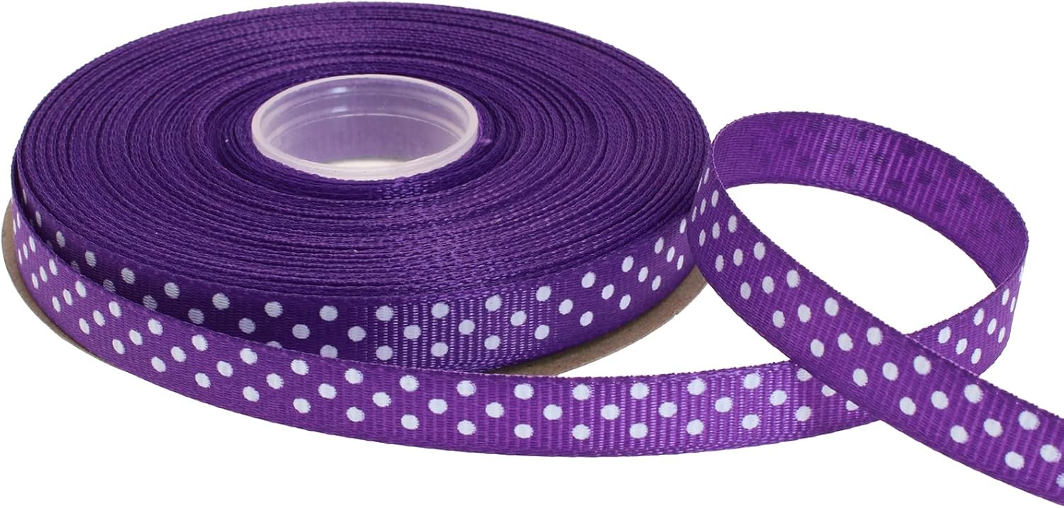 Polka Dot Grosgrain Ribbon 25 Yard Each Roll 100% Polyester (3/8", Purple)