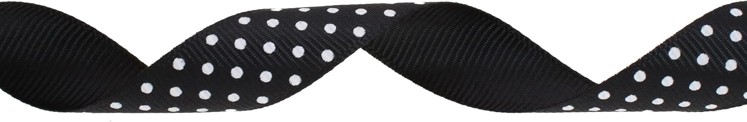 Polka Dot Grosgrain Ribbon 25 Yard Each Roll 100% Polyester (3/4", Black)