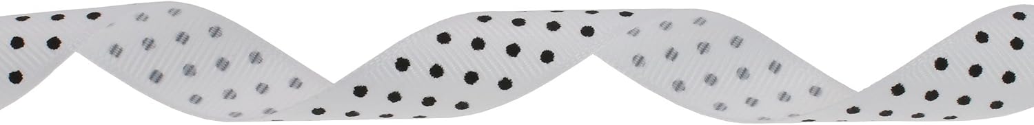 Polka Dot Grosgrain Ribbon 25 Yard Each Roll 100% Polyester (5/8", White)