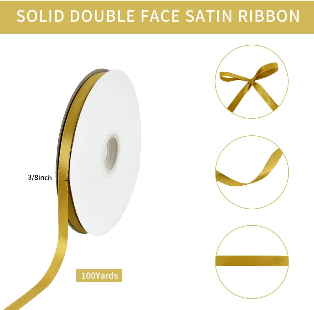 - Dimensions- High grade single face solid satin ribbons 3/8 inch(1cm)wide/spool, these ribbon come in a convenient 100 yards packages so that you have plenty for decorating.
