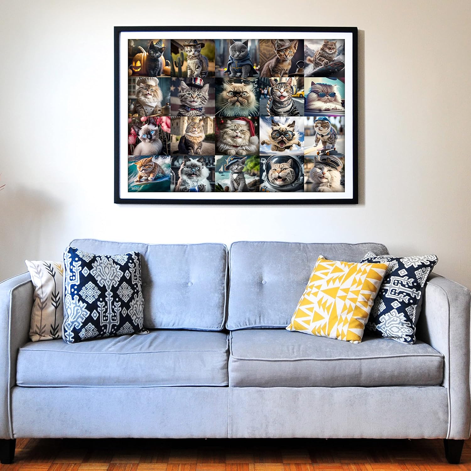 - 【Cute Cats】 - This puzzle is perfect for cat lovers and puzzle enthusiasts alike, with its brilliant colors, high-quality pieces, and 20 adorable cats including Shorthair, Ragdoll, Russian Blue, Turkish Angora, American Curl, Chartreux, Abyssinian, Siberian, British Longhair, Bobtail, Persian, Siamese, Manx, Ragamuffin, Birman and Scottish Fold. These furry friends are in adorable outfits including superhero, astronaut, cowboy, santa, pirates, halloween and princess.