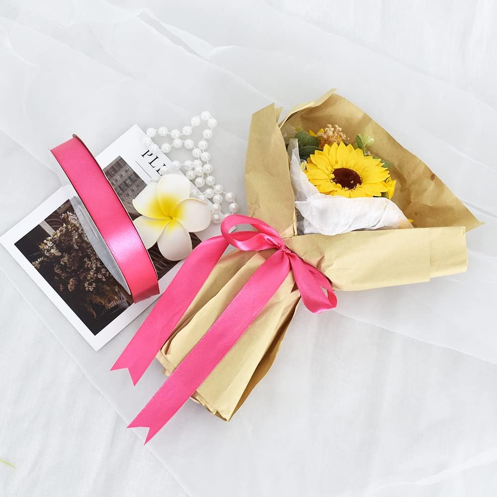 TONIFUL 1 Inch x 100yds Shocking Pink Satin Ribbon, Thin Solid Color Satin Ribbon for Gift Wrapping, Crafts, Hair Bows Making, Wedding Party Decoration, Invitation Cards, Floral Bouquets
