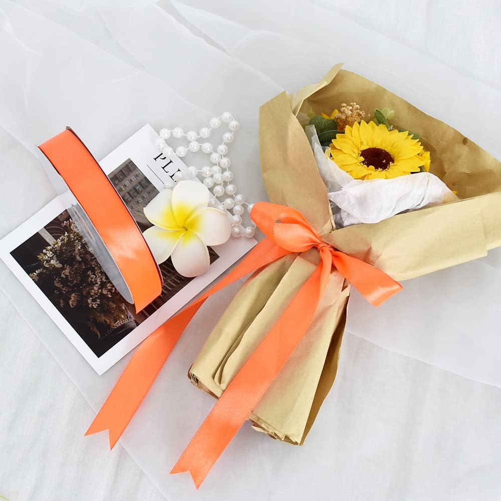 TONIFUL 1 Inch x 100yds Orange Satin Ribbon, Thin Solid Color Satin Ribbon for Gift Wrapping, Crafts, Hair Bows Making, Wedding Party Decoration, Floral Bouquets,Thanksgiving,Halloween