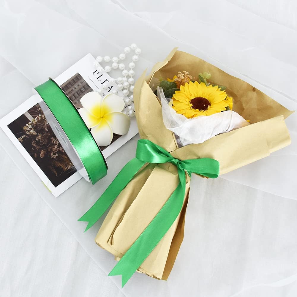 TONIFUL 1 Inch x 100yds Green Satin Ribbon, Thin Solid Color Satin Ribbon for Gift Wrapping, Crafts, Hair Bows Making, Wedding Party Decoration, Invitation Cards, Floral Bouquets