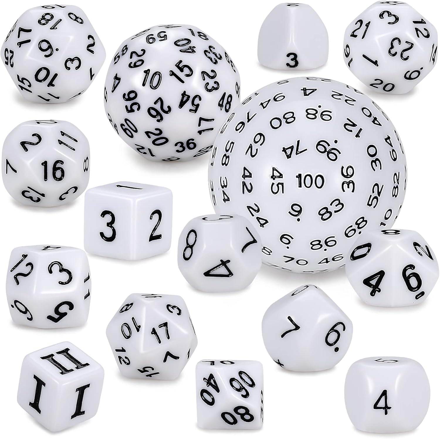 - Super dice set: DND Role Playing Dice (15pcs) from 4 sides to 100 sides, (contains D4,D5,D6,D7,D%,D8,D10,D12,D16,D20,D24,D30,D60 and D100) which can meet all your table game needs.