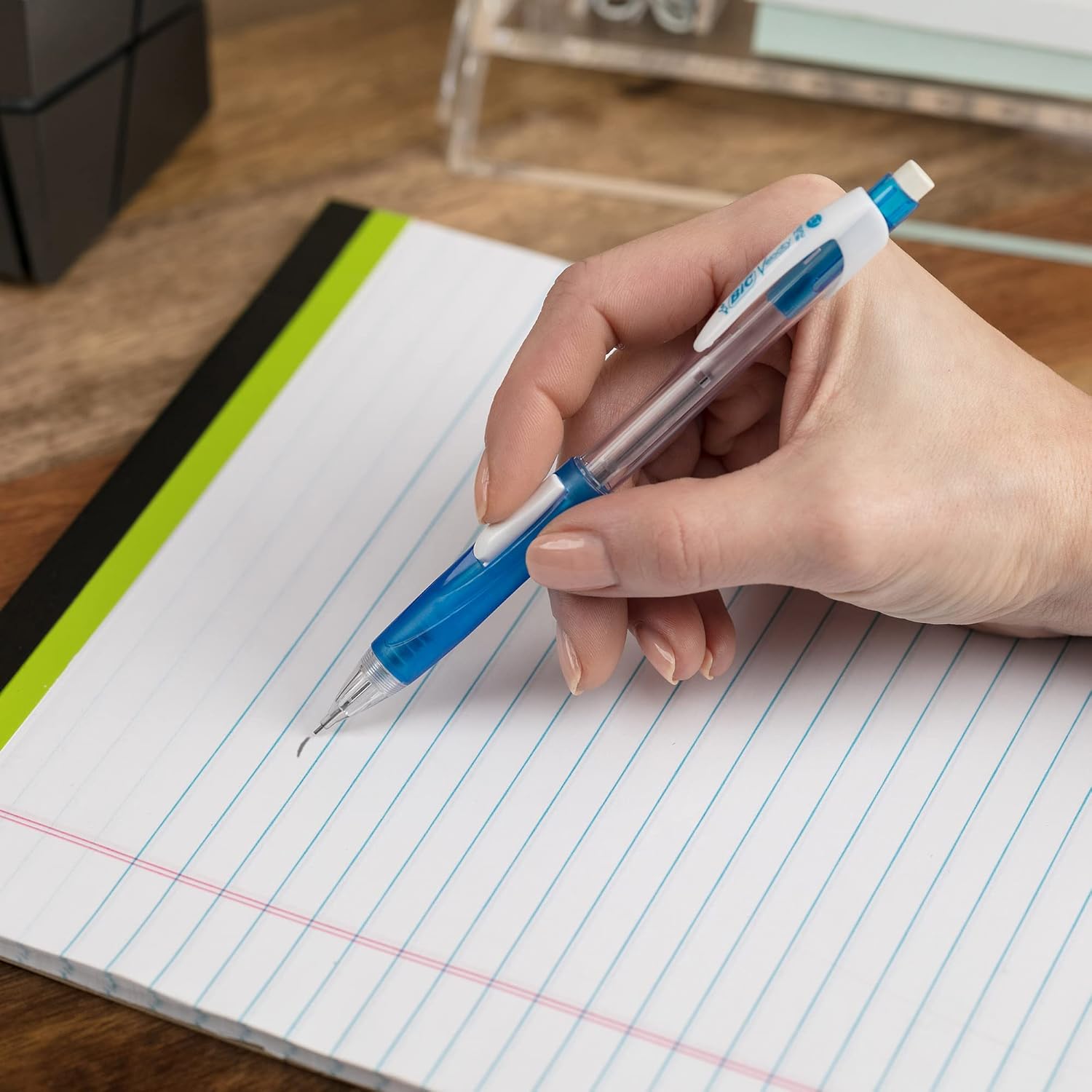 - BIC mechanical pencils are always ready and never need sharpening; to advance the lead, simply click the built-in eraser