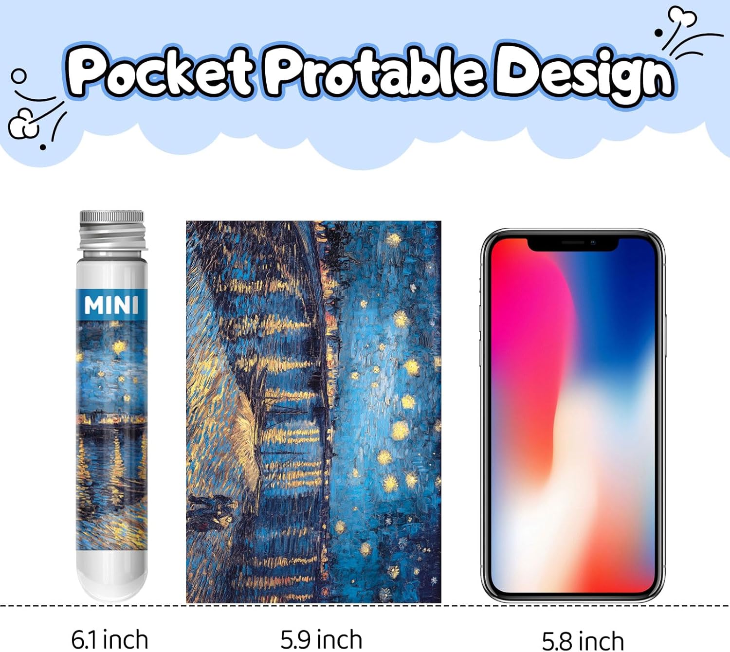 - CHALLENGE AND FUN: Jigsaw puzzles quiet the mind and induce a state of creative meditation. The size of capsule tube packing make it easily carry. Enjoy it any time and anywhere with the help of little tweezers.