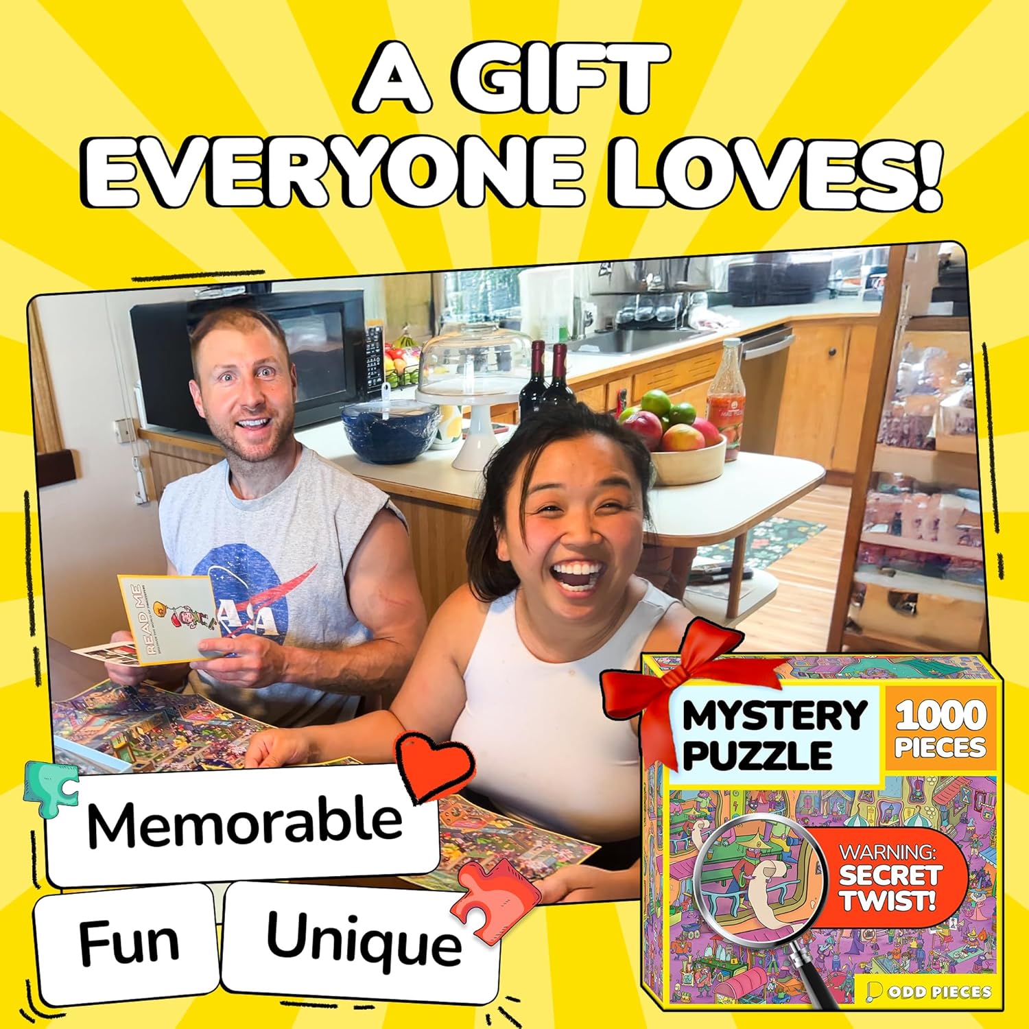 - Mystery Puzzle with a Twist - The image on the box isn’t the final picture! This 1000 piece mystery puzzle reveals hidden surprises and a shifting scene as the story unfolds piece by piece.