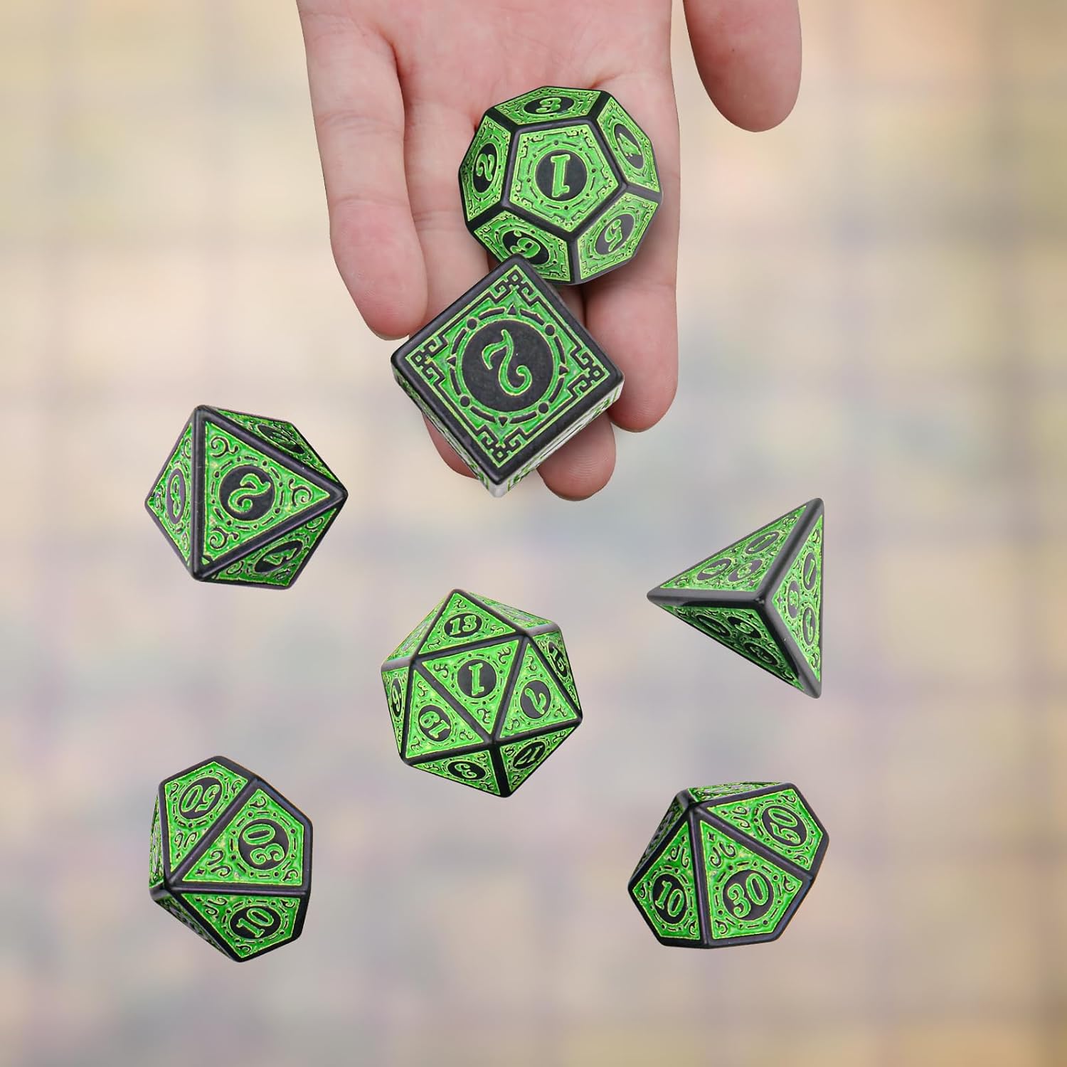 - 【Good Quality and Easy to Read】: Made from high-quality acrylic material with precisely carved mold, these polyhedral dice are extremely durable and easy to roll.Each dice with large number for easy reading.
