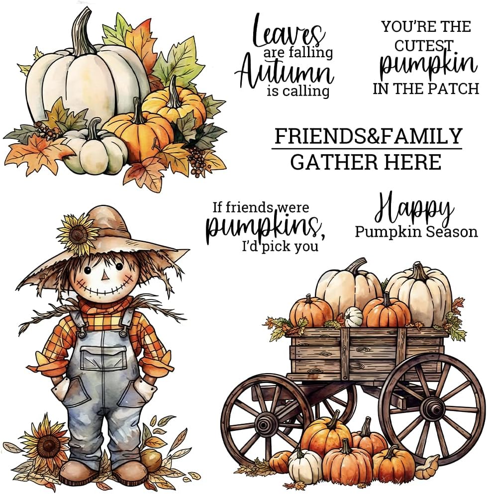 Halloween Clear Silicone stampReusable Stamp with Pumpkins, Skulls, Bats, Santa Claus, and Holiday Designs. Used for Making Cards, scrapbooks, and DIY templates (Scarecrow)
