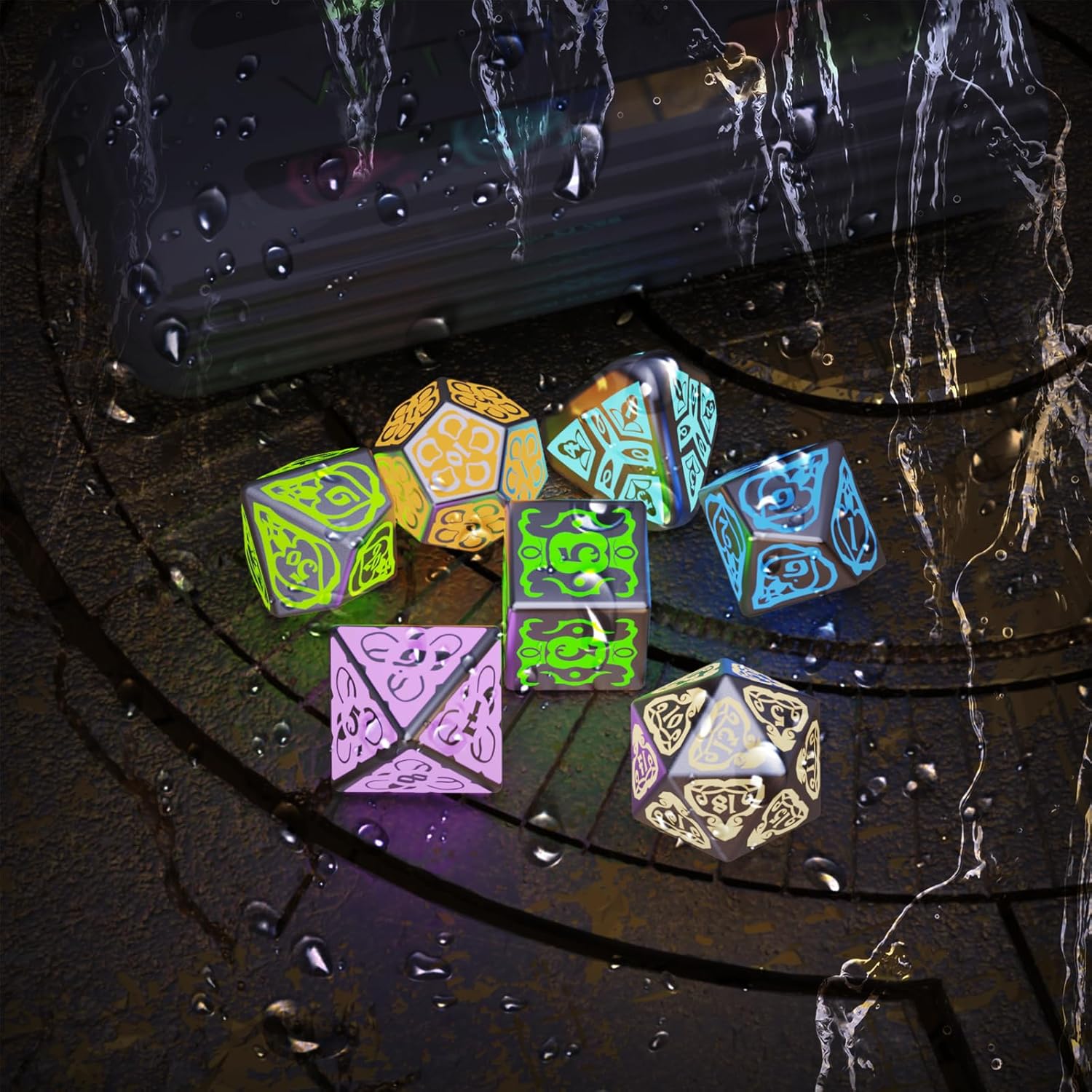 - Light Up Polyhedral Dice Set: DND dice built-in RGB Light; 7 pcs balance d&d dice set will auto lit 15 s when rolled or collisions; It can be used continuously light 1200-1400 times; Using 6 Hours after 3.5 h Charging; Now take your dice and roll it