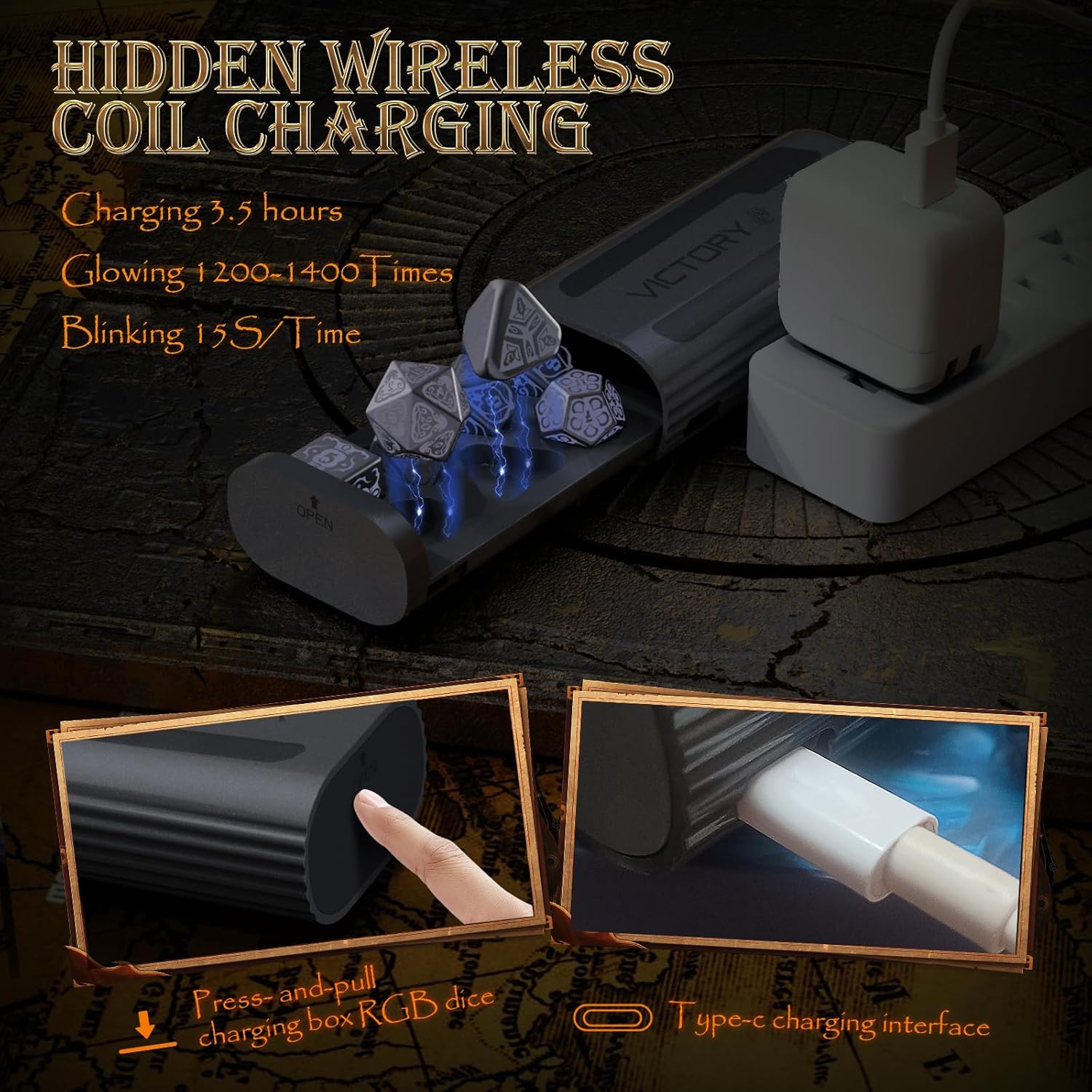 - Type C Wireless Charging LED Dice: built-in wireless coil for charging; come with a charging box, a type c cable and a charging instructions card, charge DND dice via power bank, adapter, PC easily; It's normal for dice to get a little hot while charging