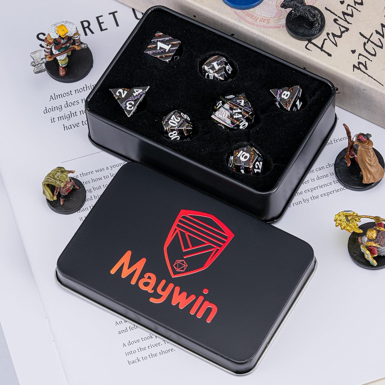 - Well rolling - Metal DND dice set is made of zinc alloy material, Each die has a hefty weight and durable coating that lets you throw with confidence and authority.