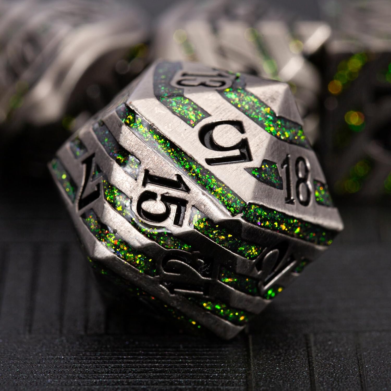 Stripe Metal Dice Set D&D,7PCS Solid Metal Glitter Dice with Gift Box,RPG Polyhedral Dice Set for DND Table Game
