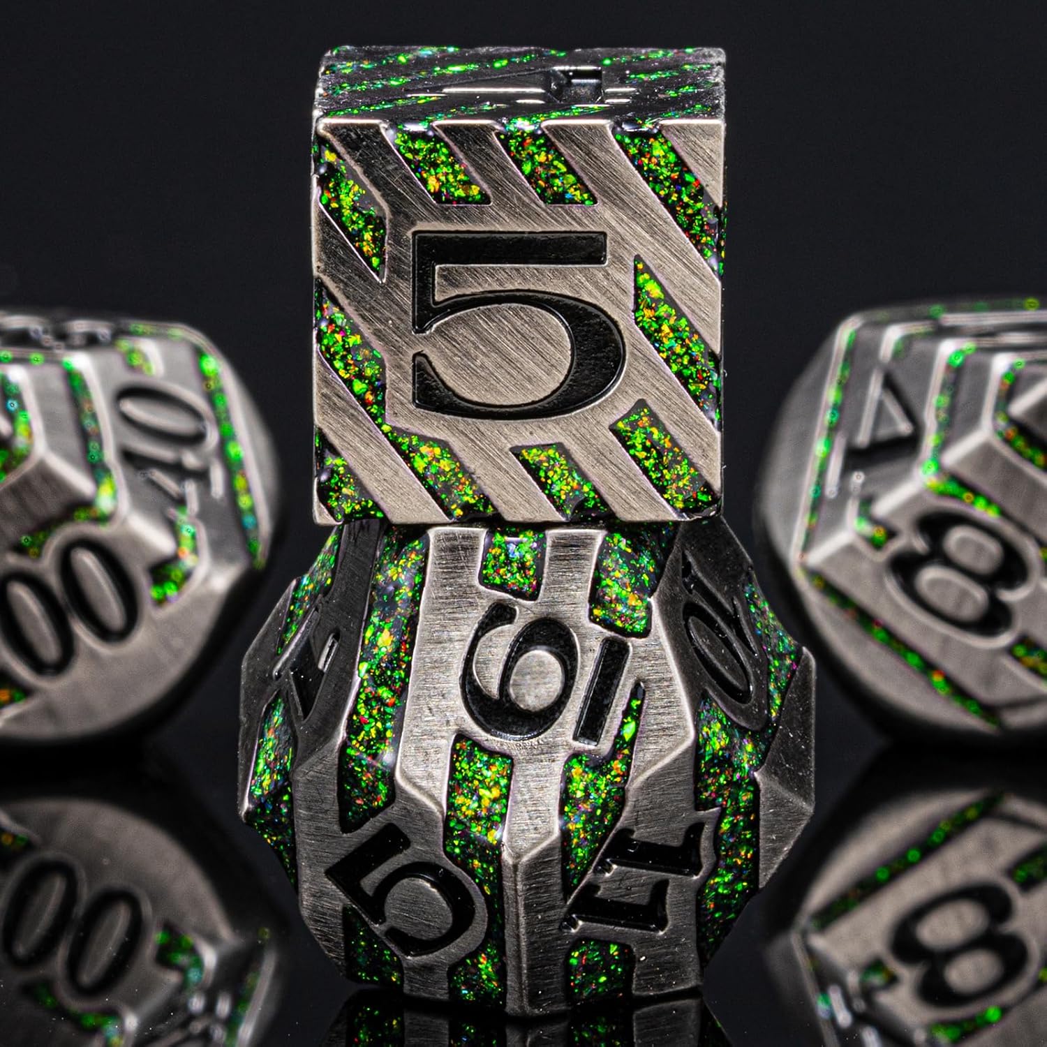 - Excellent Craftsmanship - metal dice Stripes design, the dice is having the cool engraving. All of these elements are carved on the metal dnd dice set with exquisite craftsmanship