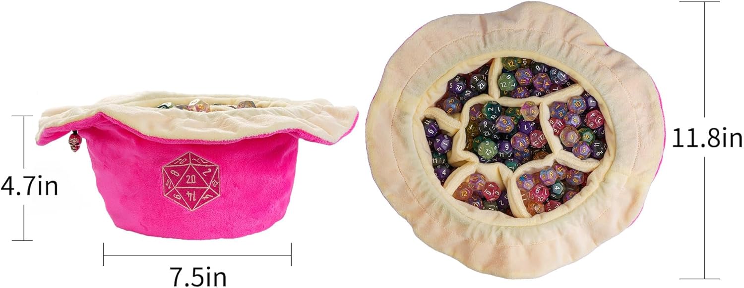 - 【Big Capacity】: The dnd dice storage bag has a round base about 7.5 inches in diameter and 4.7 inches tall, and the round opening about 11.8 inches in diameter. Are you still worried about how to storage your large number of dice? This large dice bag can easily hold over 200 dices, so please have it with confidence.