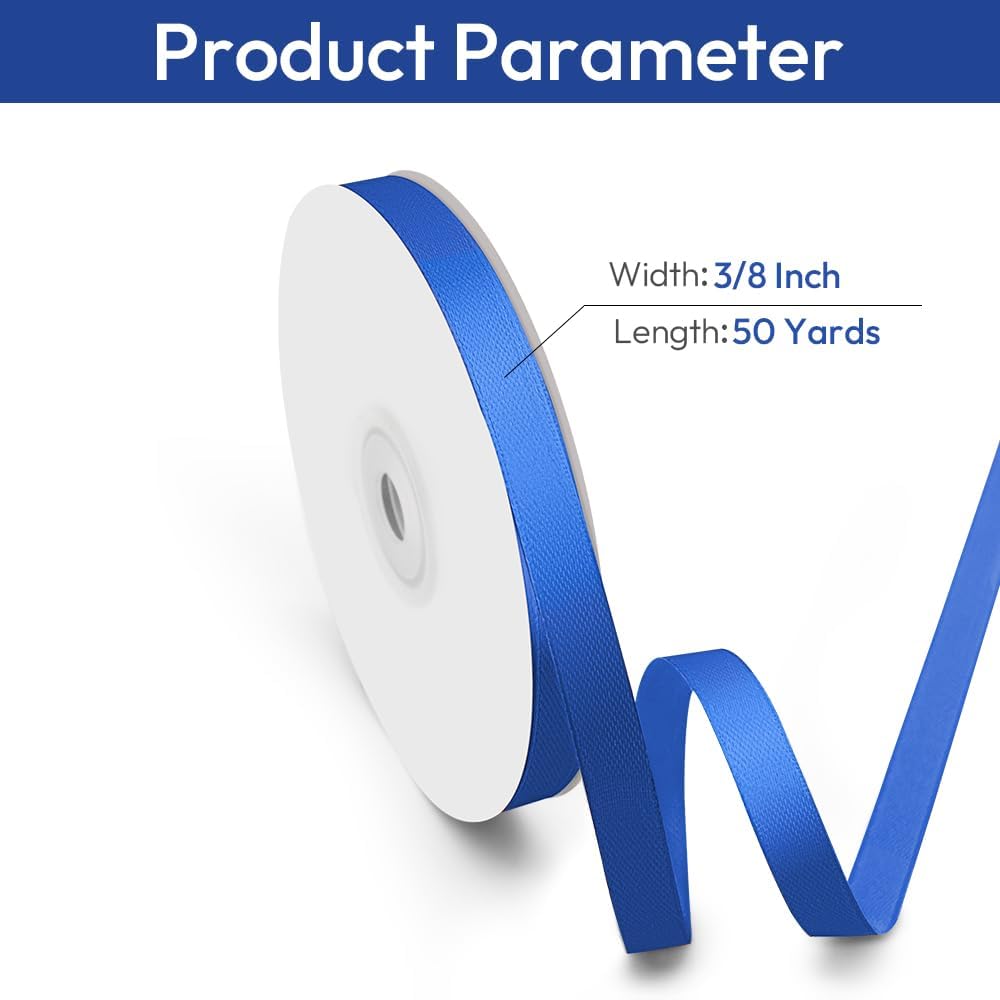 - 【Ample Length for Your Craft】 3/8" wide royal blue satin ribbon is 50 Yds long, providing ample material for all your crafting needs such as wedding invitations, sewing, hair bows, bridal bouquets, lei making, homecoming mum accessories, and more.