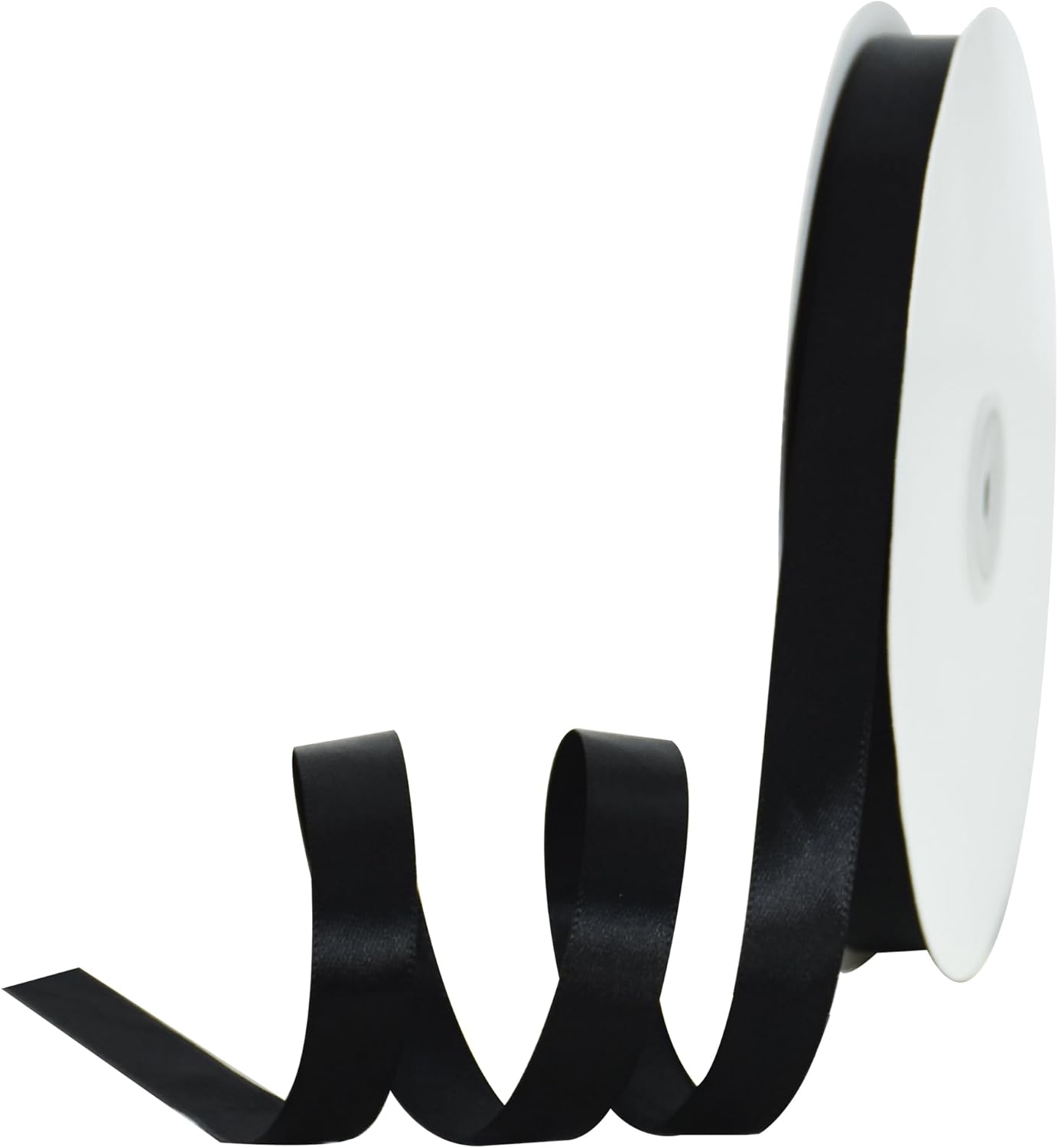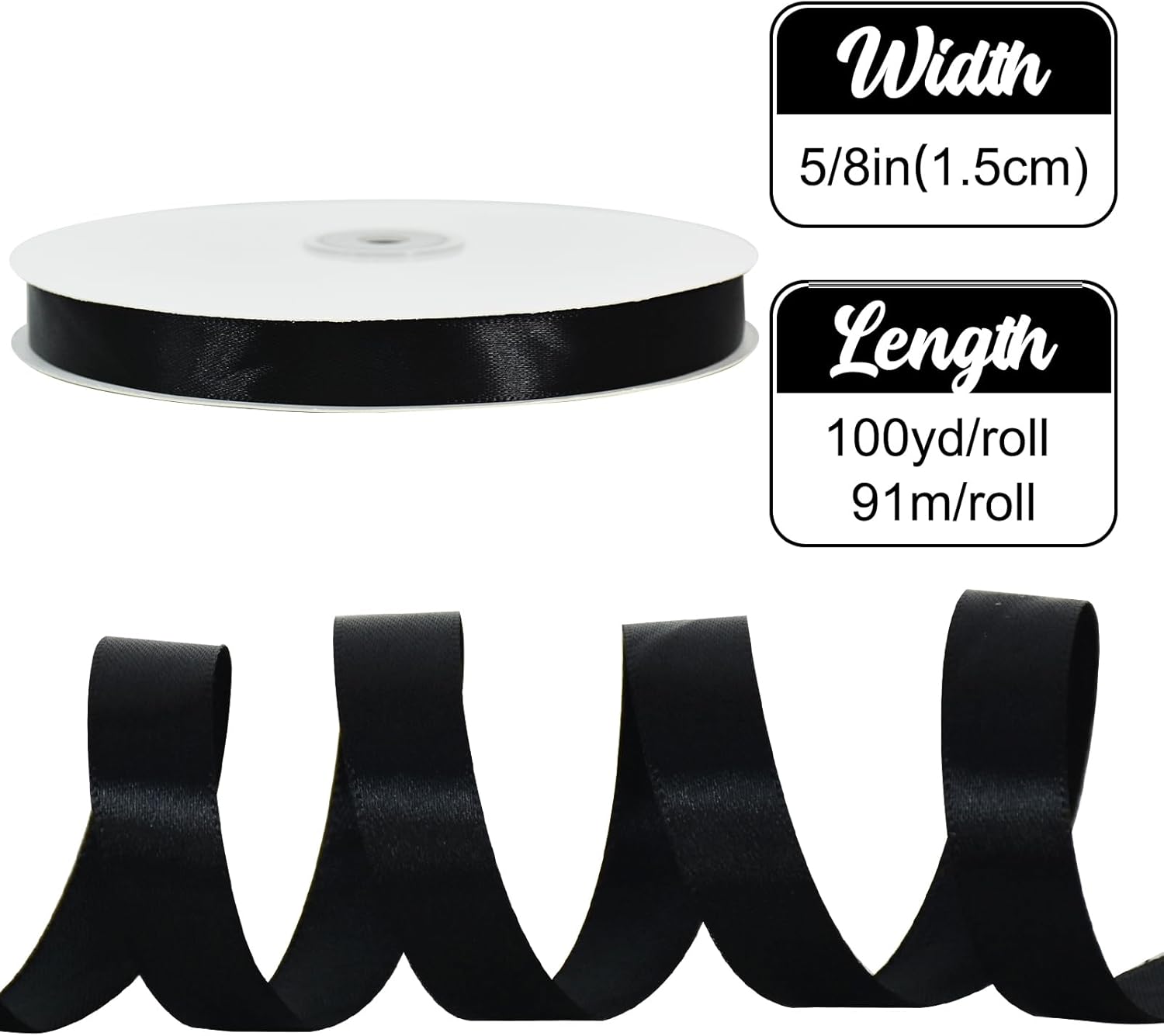 TONIFUL 5/8 Inch x 100yds Black Satin Ribbon Thin Solid Frabic Ribbons for Sewing, Craft, Bows Making, Gift Wrapping, Invitation Cards, Wedding Party Valentine's Decor